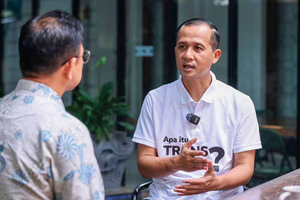 2025年11月16日,印度尼西亚人口流动部部长穆罕默德·伊夫提塔赫·苏莱曼(右)在 雅 加达接受新华社记者专访