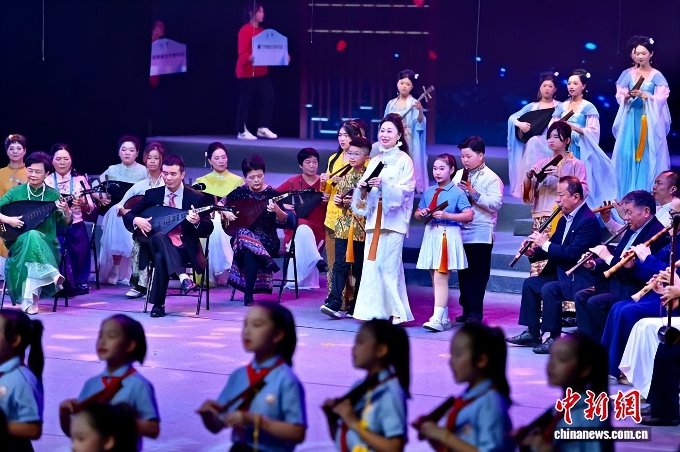 12月10日晚,泉州国际南音大会唱启动并举行《南音薪传 四海弦歌》南音专场晚会。图为海内外弦友同台演绎名谱《梅花操》。中新社记者 王东明 摄