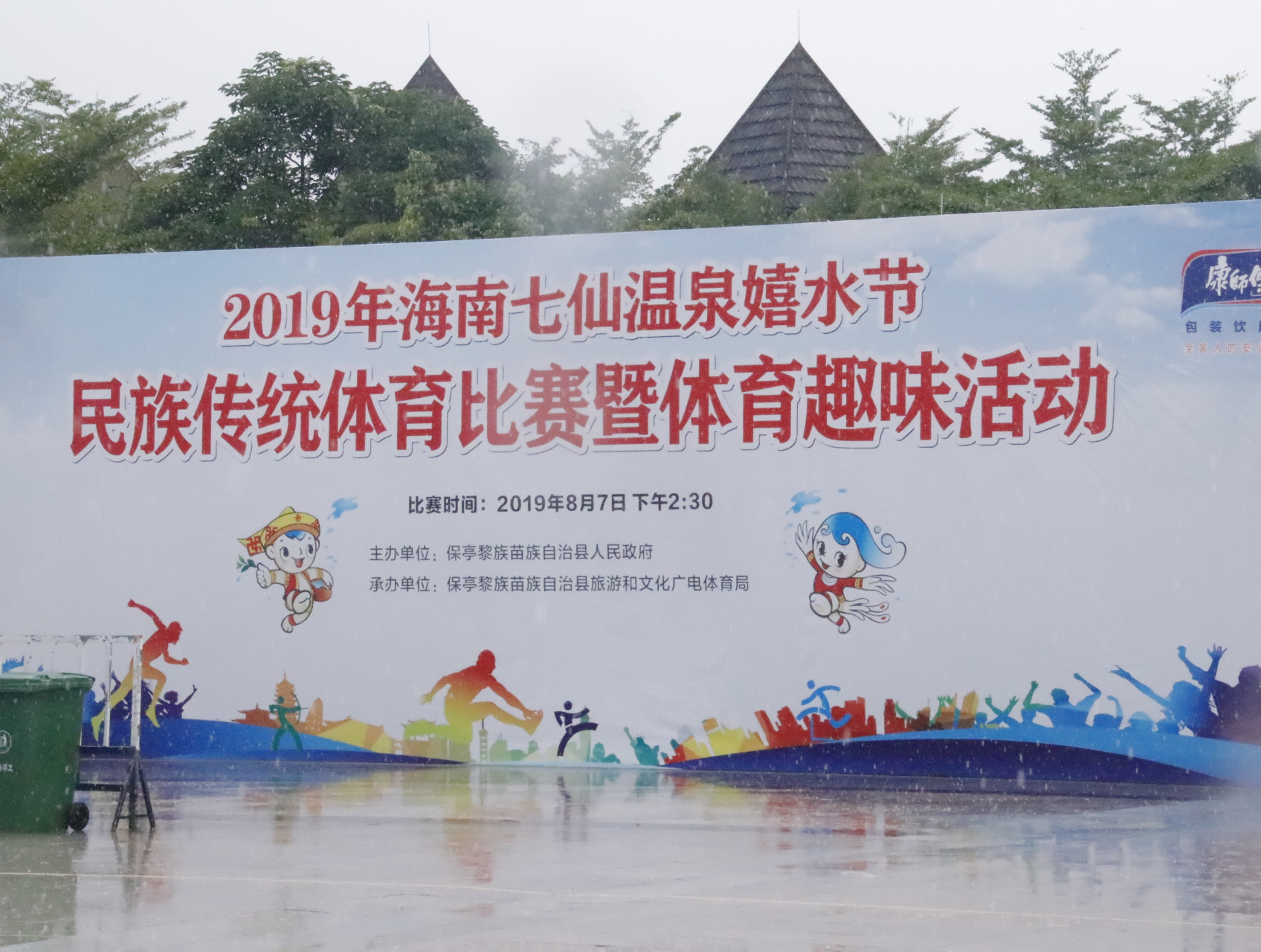 海外华媒头条报道 8月7日,2019海南七仙温泉嬉水节正式启幕。上午嬉水狂欢的欢乐气氛还没过,下午,七仙广场又上演了一场别开生面的趣味运动会。