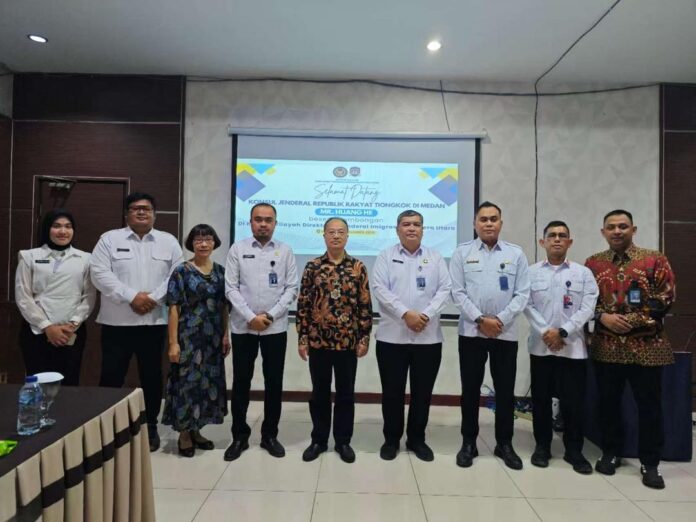 来自中国驻棉兰总领馆的消息,12月10日,驻棉兰总领事黄河会见苏北省移民厅厅长戴欧,徐春娟副总领事、棉兰、波罗尼亚、勿拉湾和先达等地移民局局长在座。