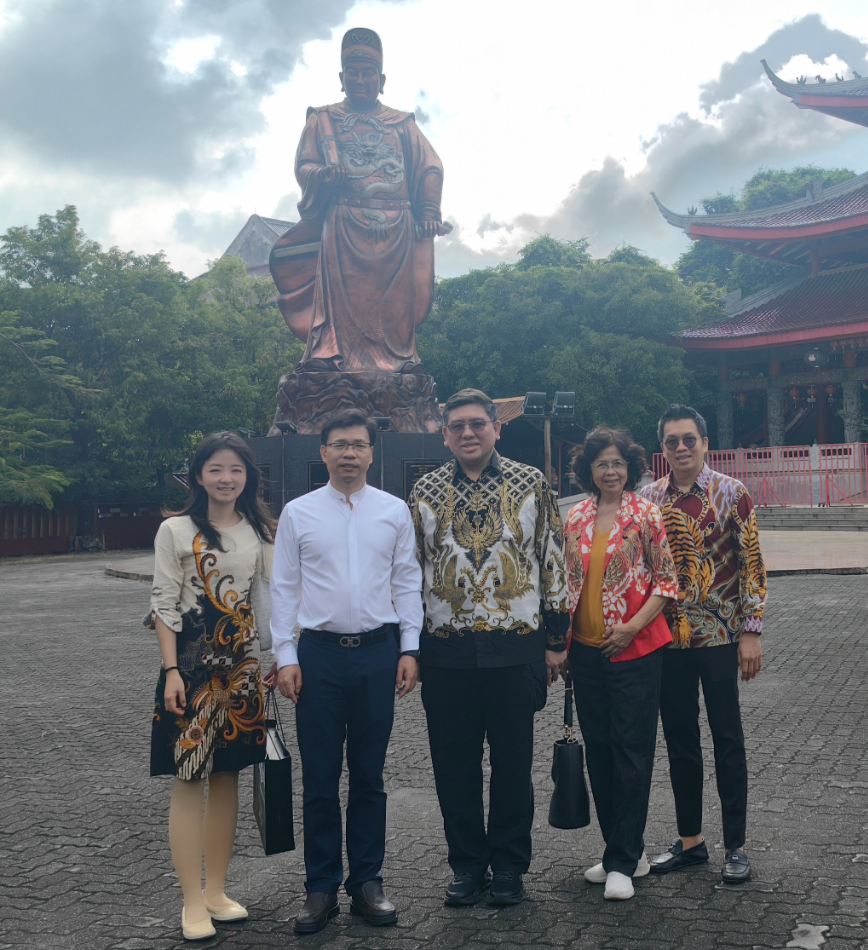 张朝龙详细介绍三宝庙历史,表示三宝垄与中国航海家郑和有着不解之缘,600多年前郑和下西洋多次到访此地并留下佳话,郑和休憩礼拜的一处山洞后来被命名为三宝洞。现在的三宝庙兴建于20多年前,由三宝洞基金会筹资以原三宝庙为核心扩建,如今已成为印尼规模最大的郑和纪念场所,珍藏有多件珍贵文物以及印尼最高的郑和铜像。三宝庙以深厚的历史底蕴、独特的建筑风格、丰富的文化活动,深受印尼各地区、各宗教、各族群民众喜爱,也日益成为世界游客特别是中国游客的网红打卡点。