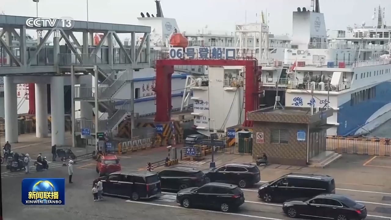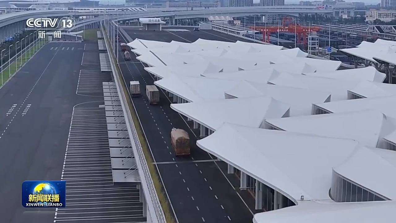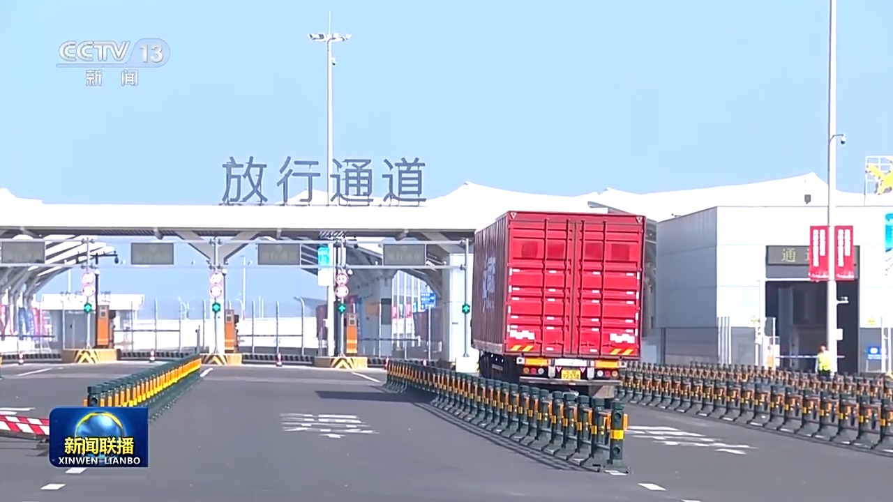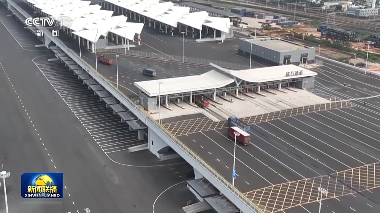 总台央视记者王雷:我现在在海口新海港和南港“二线口岸”货运集中查验场,在我身后,第一批装载着享受加工增值免关税政策货物的车辆,正在顺序通过海关监管通道,准备进入内地。