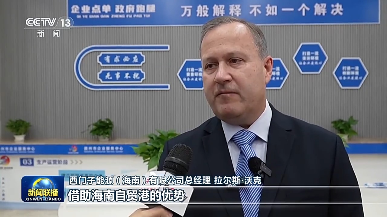 西门子能源(海南)有限公司总经理拉尔斯·沃克:借助海南自贸港的优势,我们可以优化物流流程,使一切更加快捷,加快交货速度,海南自贸港极具竞争力的开放举措,让我们对在这里的发展充满信心。