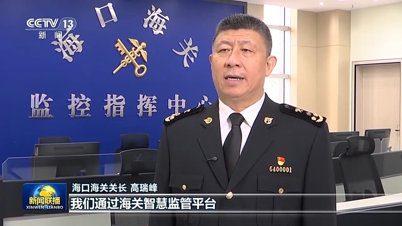 海口海关关长高瑞峰:我们通过海关智慧监管平台对货物实行风险分析、精准布控,优先采用智能检查设备查验,机检正常的1分钟左右即可通关,机检异常才会引导人工查验,既保证了监管精准,又确保高效通关。