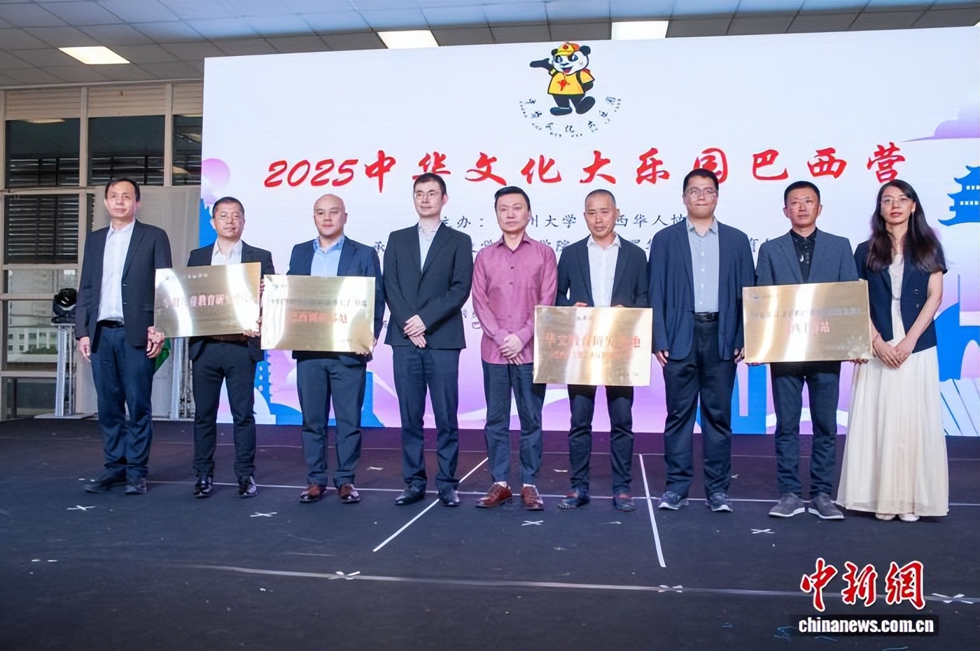 “2025中华文化大乐园巴西营”结营仪式上举行了合作基地授牌仪式。(温州大学华侨学院供图)