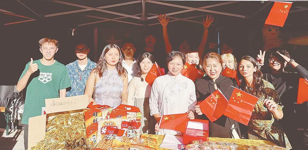 吴宏恩(前排右三)带领学校师生参加意大利当地举办的多元文化节活动。(受访者供图)