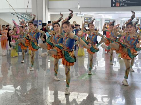 Pada pagi hari tanggal 22 Desember, segmen jalur kereta api cepat Shantou-Shantou dari Stasiun Shantou Selatan hingga Stasiun Shantou mulai beroperasi. Saat kereta perdana tiba di Shantou, suara meriah gong, drum, dan musik menembus kerumunan yang ramai, membuat para penumpang berhenti sejenak. Penari Yingwu mengayunkan tongkat ganda mereka dengan lincah, langkah mereka penuh tenaga dan kekuatan. Irama gong dan drum besar Chaozhou bergema dengan kekuatan dan kegigihan yang kuat. Lagu-lagu opera Chaozhou dan lagu rakyat Chaozhou dipentaskan secara bergantian, melodi mereka mengalir dan merdu… Pertunjukan flash mob ini, yang memadukan tradisi dengan modernitas, berulang kali mengangkat suasana ke tingkat yang lebih tinggi.