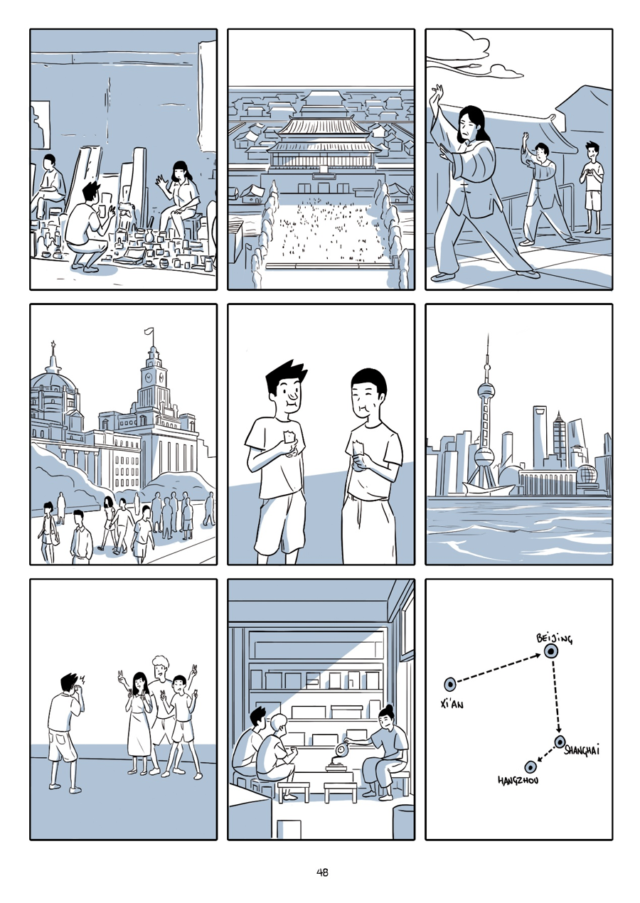 他饶有兴致地体验上海的变化,也在自己的漫画中,记录生活的点点滴滴。2004年初到上海那阵子,他曾在南京路商圈的小路上看见孩子在塑料盆里洗澡,“而霓虹灯就在五十米外”;如今电线入地、老房消失,城市面貌日新月异,但他仍会怀着极大的热情排队买葱油饼,“喜欢吃的店就多吃几次,说不定明天就关门了呢。”