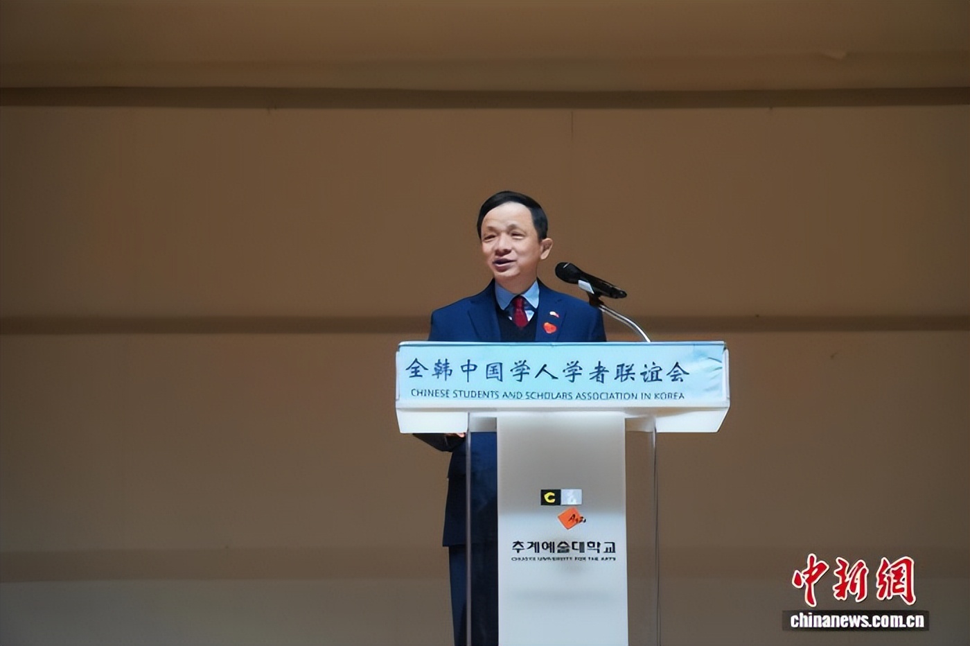 12月30日,2026年在韩中国学人学者迎新年文艺联欢会在韩国秋溪艺术大学成功举办。图为中国驻韩国大使戴兵致辞。刘思宁 摄