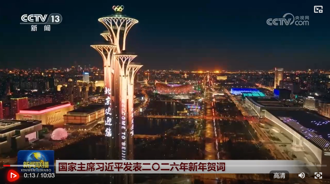 “柴米油盐、三餐四季,每个‘小家’热气腾腾,中国这个‘大家’就蒸蒸日上。”新年前夕,国家主席习近平通过中央广播电视总台和互联网,发表了二〇二六年新年贺词。习近平主席用温暖有力的话语,娓娓讲述这一年中华大地的盛典荣光、科创亮点、文化“顶流”、民生成绩、外交硕果、全运盛况,深情回望“十四五”时期我们走过的极不寻常的历程,诚挚致敬每一位辛勤付出的奋斗者。