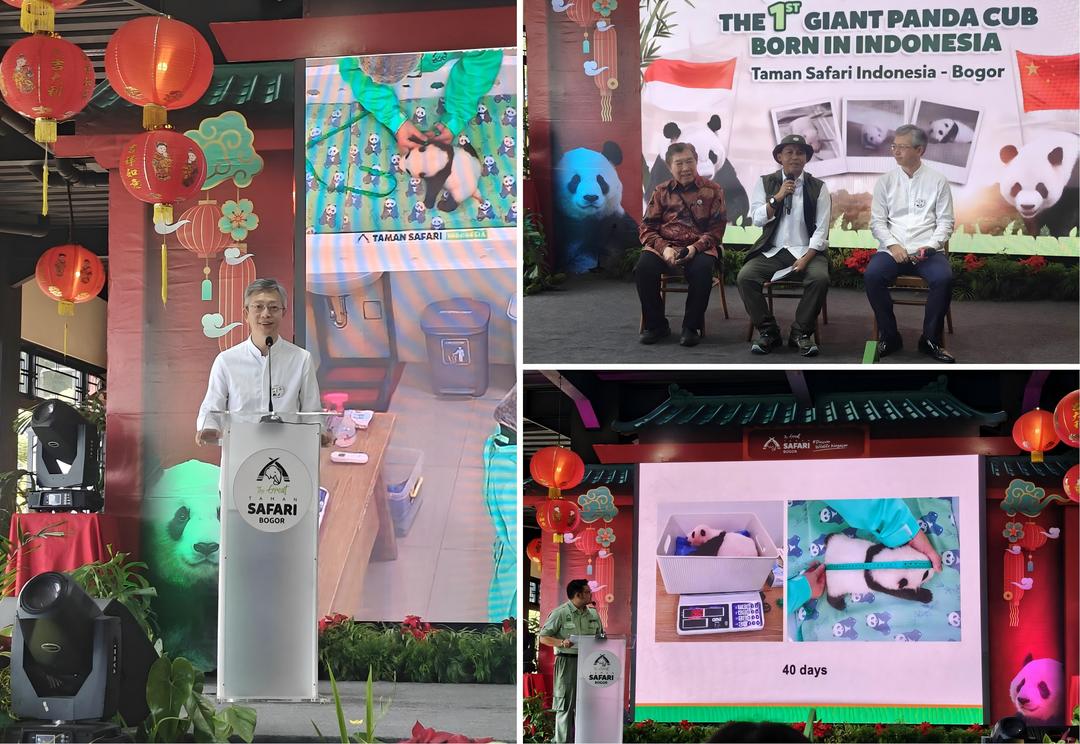 王大使表示,旅印尼大熊猫“湖春”顺利产下幼仔,得益于中印尼双方专家团队在大熊猫幼仔繁育中的共同努力,以及印尼野生动物园的专业投入与悉心照料。大熊猫幼仔的诞生是中印尼两国深厚友谊的象征,承载着我们对和平、友爱和合作的美好祝愿,也是双方合作的成功范例。中国高度重视生态资源和生物多样性保护,提出共建地球生命共同体主张,积极推动全球生态和生物多样性治理进程,目前已与印尼在濒危物种保护、珊瑚礁和红树林修复、植物育种与遗传资源保护领域深入合作并取得丰硕成果。双方将以生态友好的现代化为目标,进一步加深合作交流,为联合国可持续发展目标作出更大贡献。
