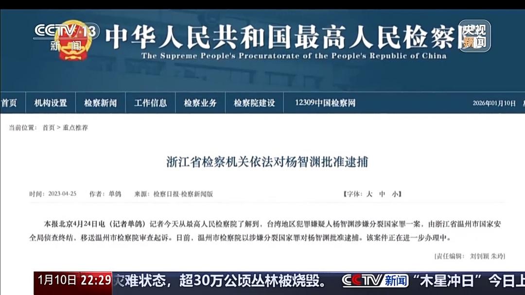 2023年,“台独”顽固分子杨智渊,在浙江温州被批准逮捕,并被温州市中院以分裂国家罪判处有期徒刑九年。法网恢恢,不仅相关司法解释规定,可对“台独”顽固分子进行缺席审判,而且即使他们逃亡海外,也难逃法律制裁。