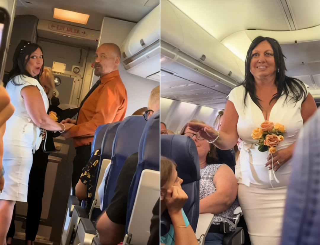 据《纽约时报》报道,这对新人名为蒂娜(Tina)与罗杰(Roger),婚礼全程由航班空服员通过广播主持。仪式进行时,新娘手捧橙色花束缓缓走过机舱走道,现场背景音乐悠扬响起,画面宛如浪漫喜剧场景。新郎身着橙色衬衫搭配同色系领带,在机头位置静静等候,两人在全体乘客的欢呼声中牵手宣誓,完成简短仪式后相拥亲吻,氛围十分热烈。