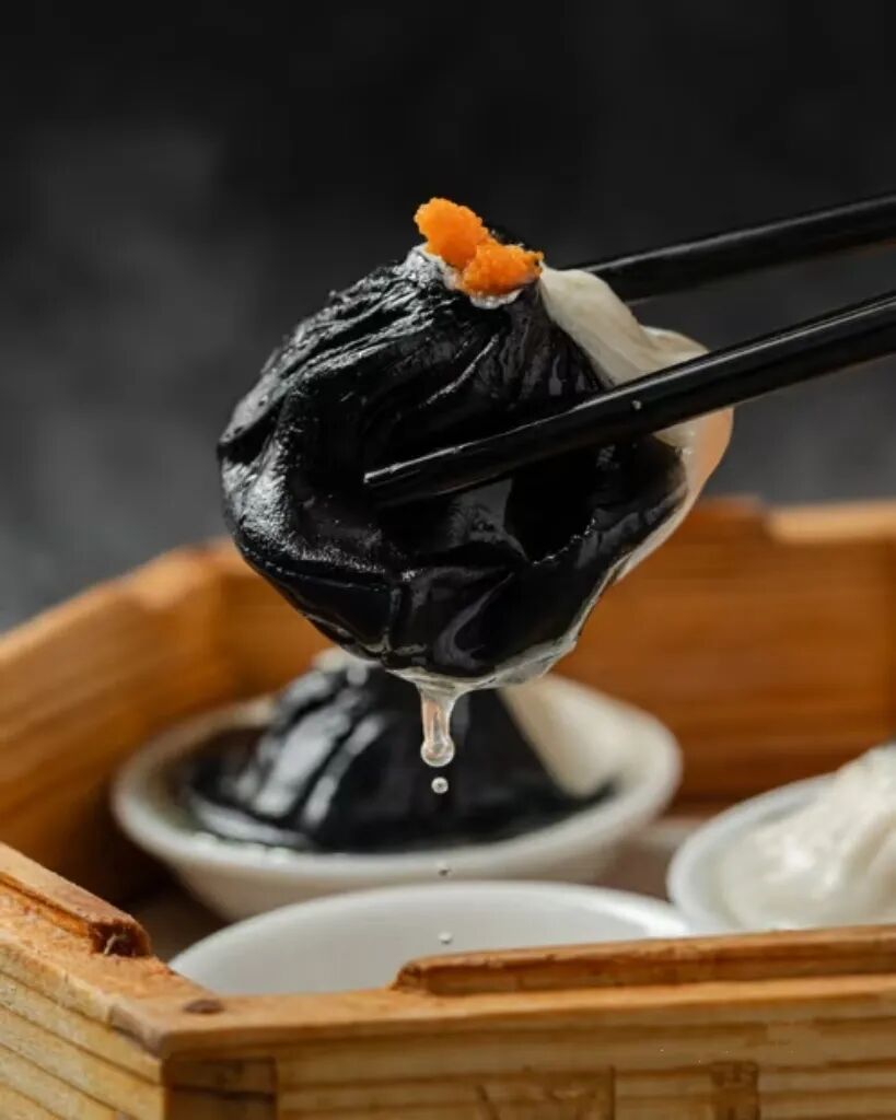 位于爱尔兰都柏林的好世界粤菜馆推出的水墨画风黑松露小笼包。(受访者供图)