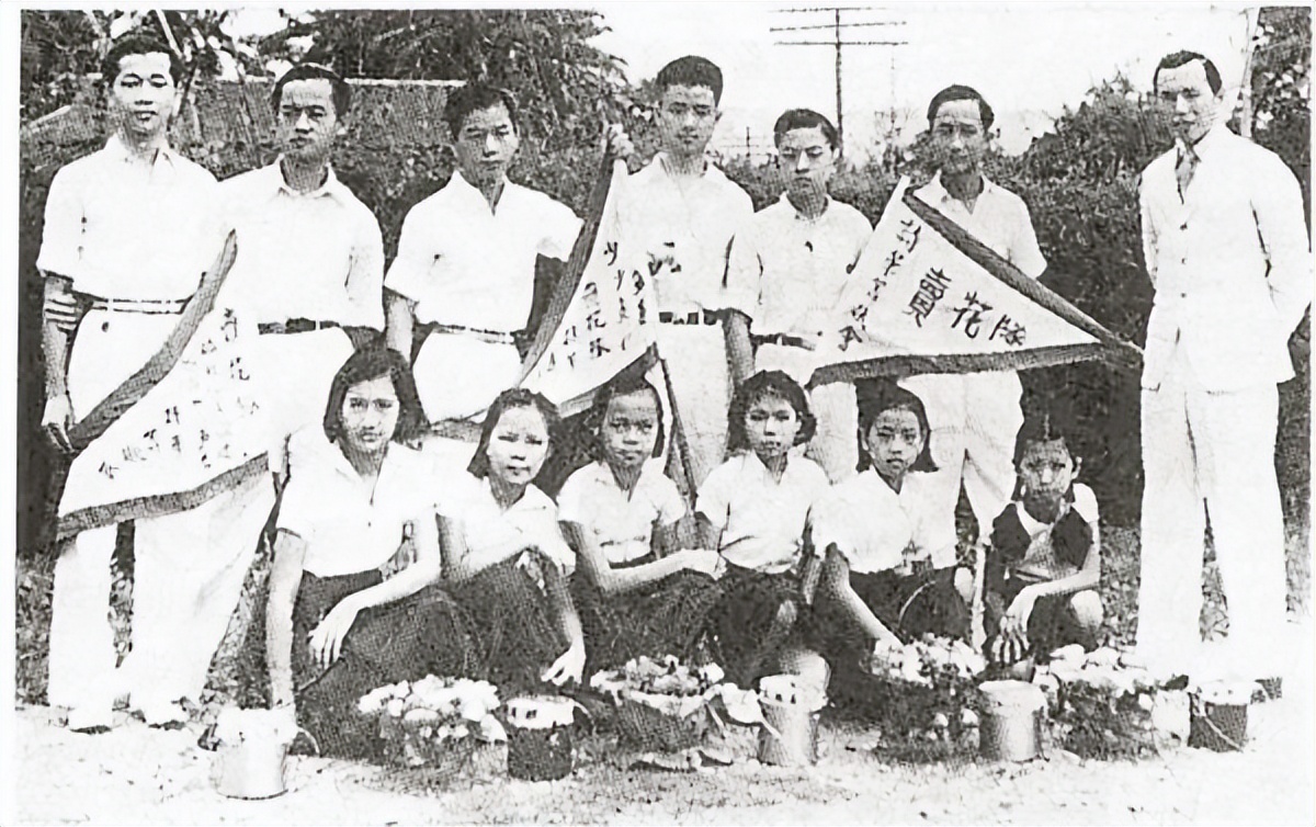 1939年,诗巫学生组织“卖花队”筹款协助祖国抗日。