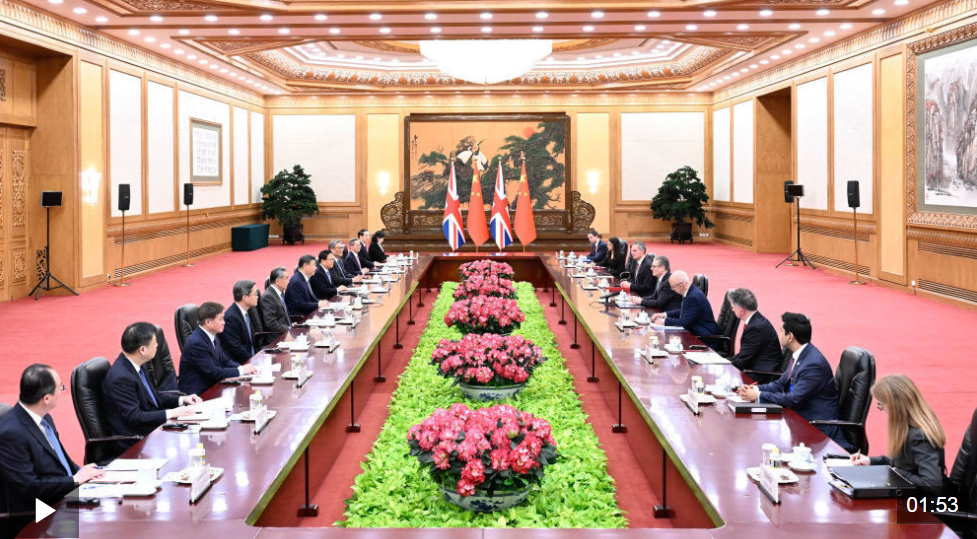 1月29日上午,国家主席习近平在北京人民大会堂会见来华进行正式访问的英国首相斯塔默。