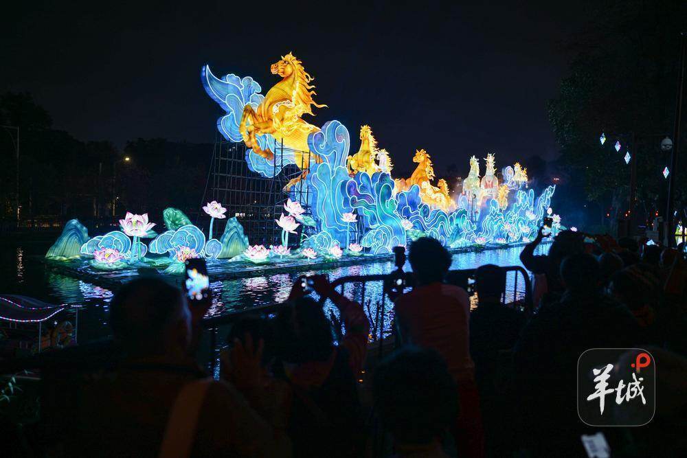 “万马奔腾”灯组前,游客们纷纷打卡