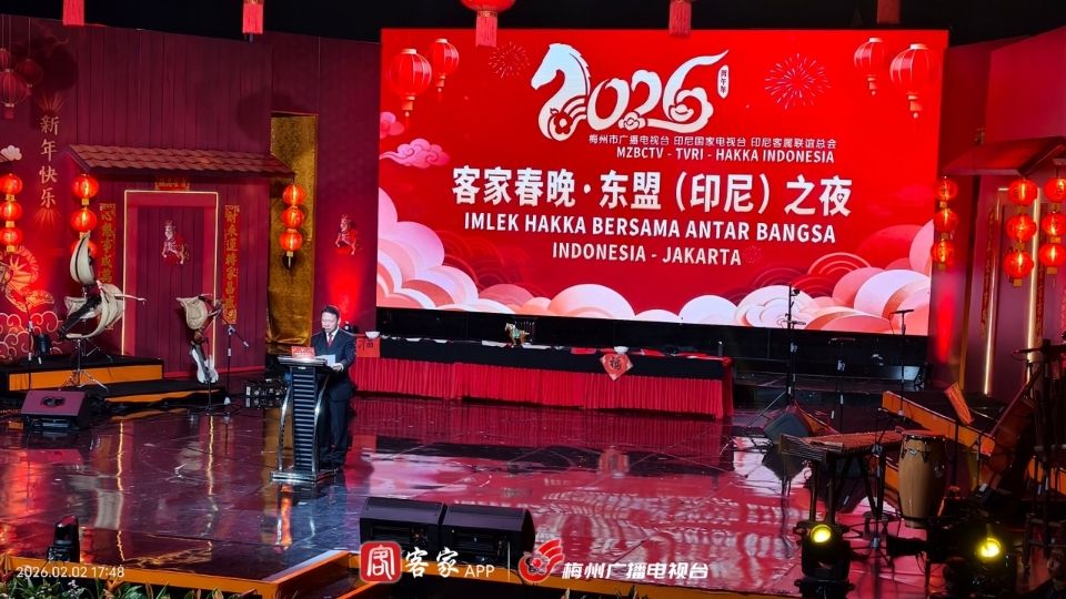2月2日晚,印尼国家电视台演播厅灯火璀璨、暖意融融,“2026客家春晚”海外分会场《2026客家春晚·东盟(印尼)之夜》在此圆满完成录制。这场跨越山海的文化盛宴,不仅为马年新春增添了浓郁年味,更以乡情为纽带,奏响了中印尼文明互鉴的动人乐章。