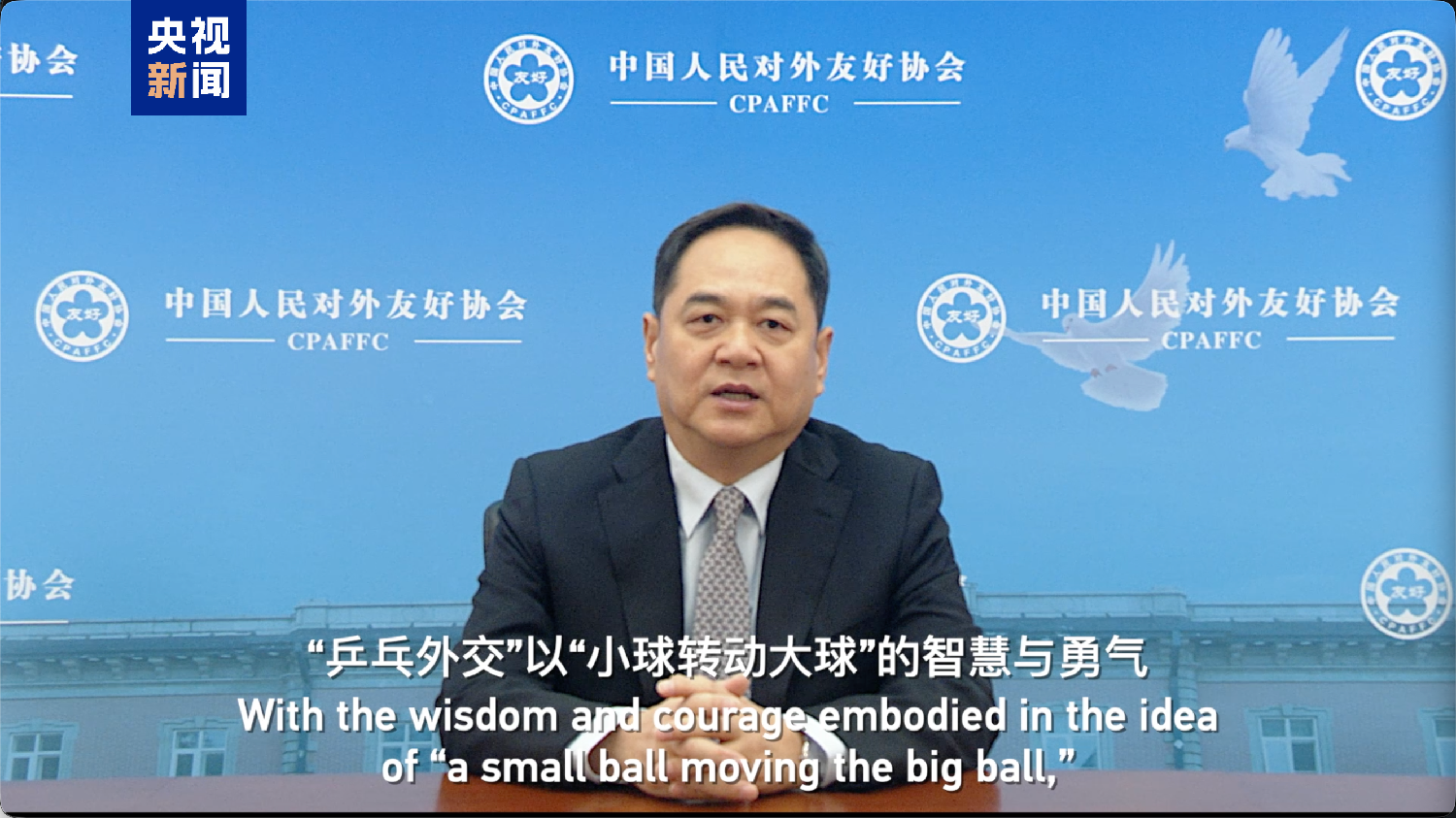 慎海雄表示,国之交在于民相亲,民相亲在于心相通。55年前,一个小小的乒乓球开启了中美两国人民心灵相通的大门,书写了“小球转动大球”的佳话;10年前,习近平主席访美期间,曾在林肯中学寄语美国年青一代多到中国走走看看,为中美友好注入信心和力量。2023年11月,中央广播电视总台在旧金山举办“中美人文交流友好对话”活动,每当看到来自林肯中学同学们亲手制作的明信片和小礼物,总能感受到由此传递而来的和平与友爱。今天,我们非常荣幸邀请到1971年访华的美国乒乓球队成员康妮·史维利斯女士,听她讲述55年前那个美好的故事,共同感受“乒乓外交”的时代价值和中美人民携手共进的美好心愿。中美关系的希望在人民、未来在青年。让我们共同续写新时代两国人民交往的精彩故事。