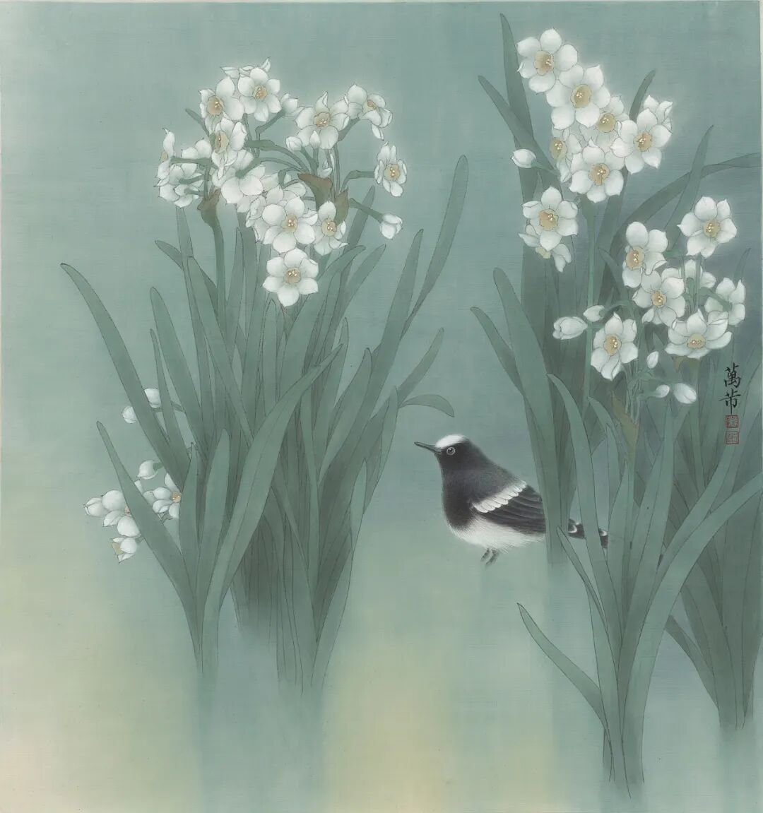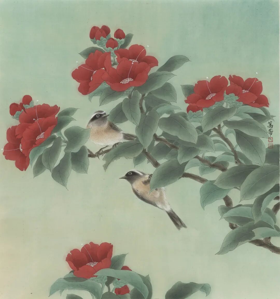 万芾是上海实力派花鸟画家,她笔下“花鸟世界”中的二十四节气,作品色彩丰富,构图现代而不失传统韵味。