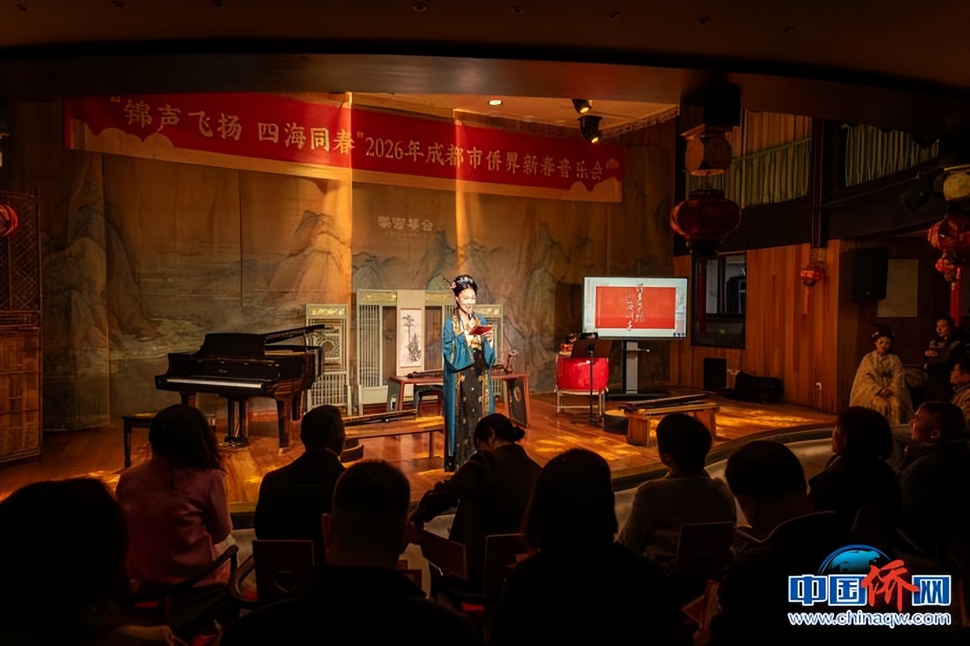 中国侨网成都电 4日,“锦声飞扬 四海同春”2026年成都市侨界新春音乐会在武侯区文化馆蜀宫琴台国风分馆举行。在蓉侨界代表、中奥文化交流爱好者等70余人齐聚一堂,以乐为媒、共迎新春。