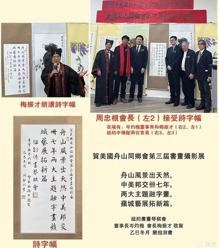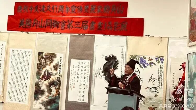 1月31日,在美国纽约曼哈顿孔子大厦举办了美国舟山同乡会第三届书画摄影展并取得圆满成功。这不是一场寻常展览,而是一次跨越太平洋的文化还乡——二百多幅书法卷轴如长河奔涌,七帧水墨山水似故岛云开,马蹄踏破宣纸风雷,梅花暗香浮过冬日厅堂。中领馆代表与侨界艺术家并肩而立,诗画琴棋会同仁挥毫泼墨,我们以笔为舟,以墨为潮,在异国楼宇间重筑舟山记忆。