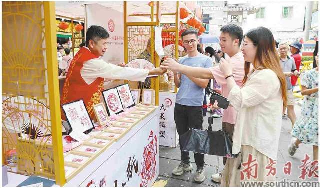 通过扩容优化,广东去年升级推出覆盖全省21个地市的30条非遗特色旅游线路,充分调动非遗街区、非遗传承体验中心、非遗馆、历史文化街区、A级旅游景区等特色场景,为非遗广货搭建起走向生活的桥梁。