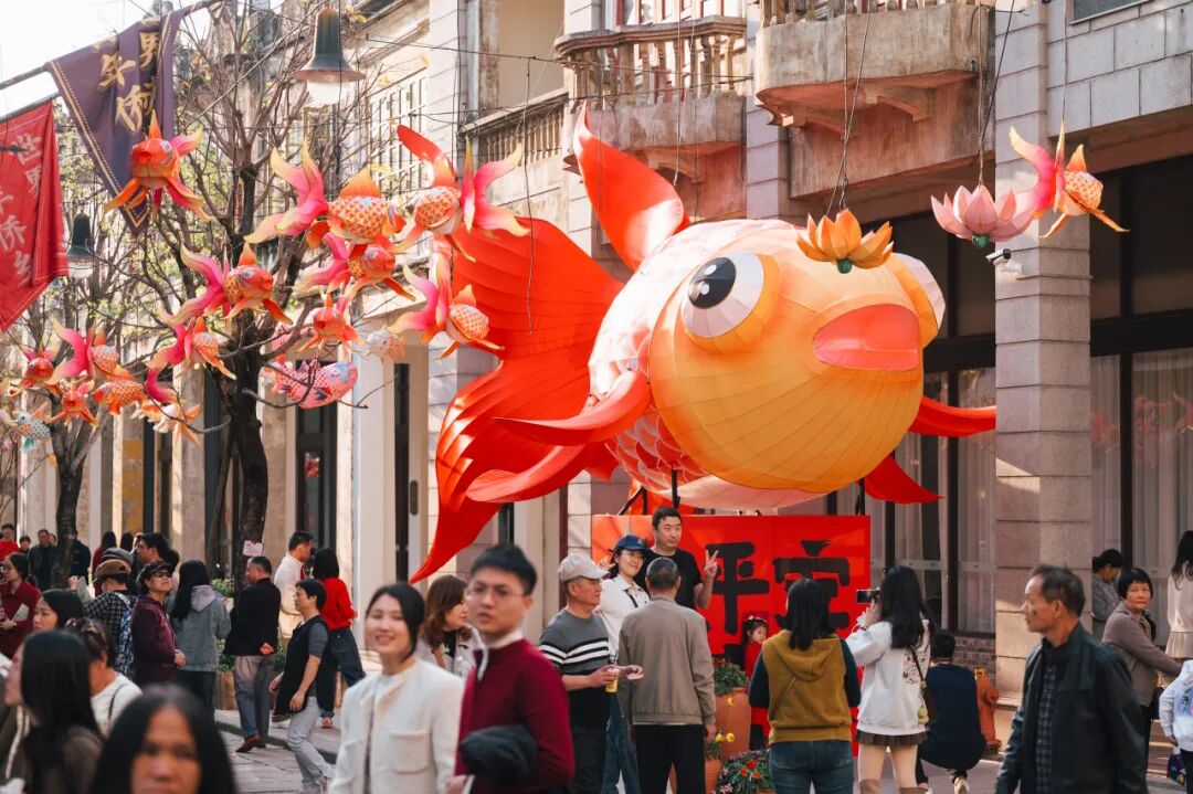 此外,赤坎还准备了香港花牌、12米发财树、马年美陈、大春联、竹编花艺、巨型鱼灯、灯笼街……为你打造新春美照片场~