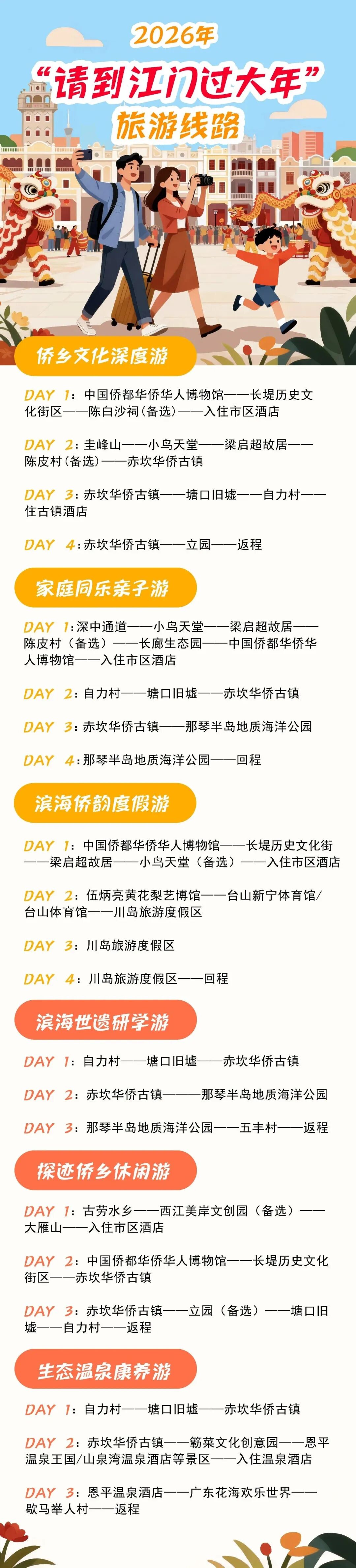 作为“江门三点三精彩之旅”在春节假期的重头戏之一,2月19日,江门将在江门市蓬江区三十三墟街举办2026年江门市龙狮巡游,届时将带来一场新春龙狮共舞的视觉盛宴。