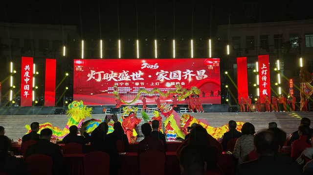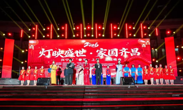 【本报兴宁报道】(记者曾旺强 苏成成 通讯员兴宣)兴宁市2026年“春节·上灯”主题晚会2月9日晚在明珠文化广场举行。作为“上灯+”系列活动的重头戏,晚会以艺术语言诠释客家文化、以灯火意象凝聚情感,通过文艺展演生动呈现广东省兴宁市在“百千万工程”引领下推动非遗活化、促进文旅融合的实践图景,为市民呈现一场融合传统民俗与现代审美的文化盛宴。