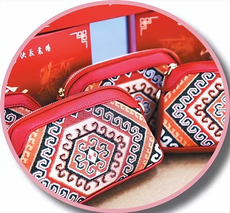 图为谭艳宾与团队为海外侨胞设计的土家织锦“西兰卡普”手包。
