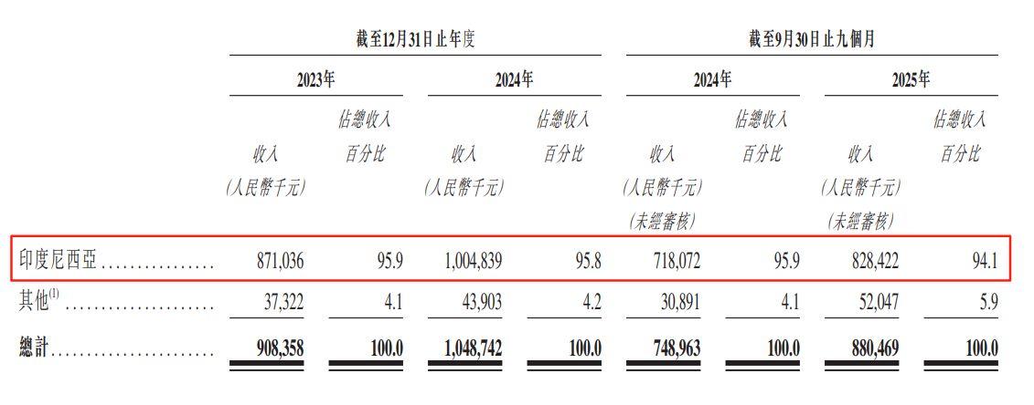 印尼市场营收占比超90%