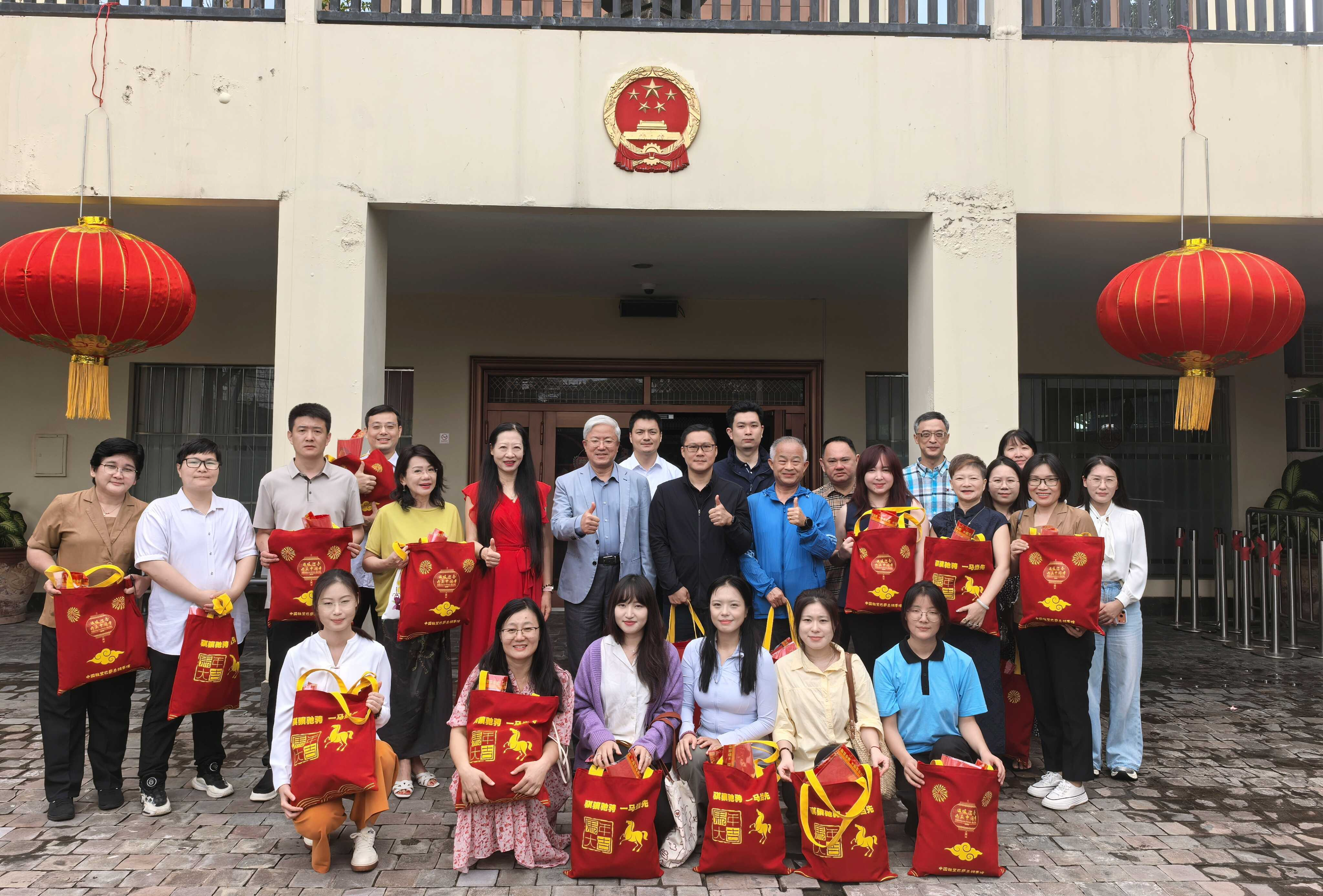 张志昇向大家赠送总领馆精心准备的新春暖心包,代表党和政府向海外中国公民致以马年新春的诚挚祝福,并表示,总领馆将继续深入践行以人民为中心的发展思想,全力维护领区中国公民和中资机构的安全及合法权益,不断提升领事服务的效率和质量。