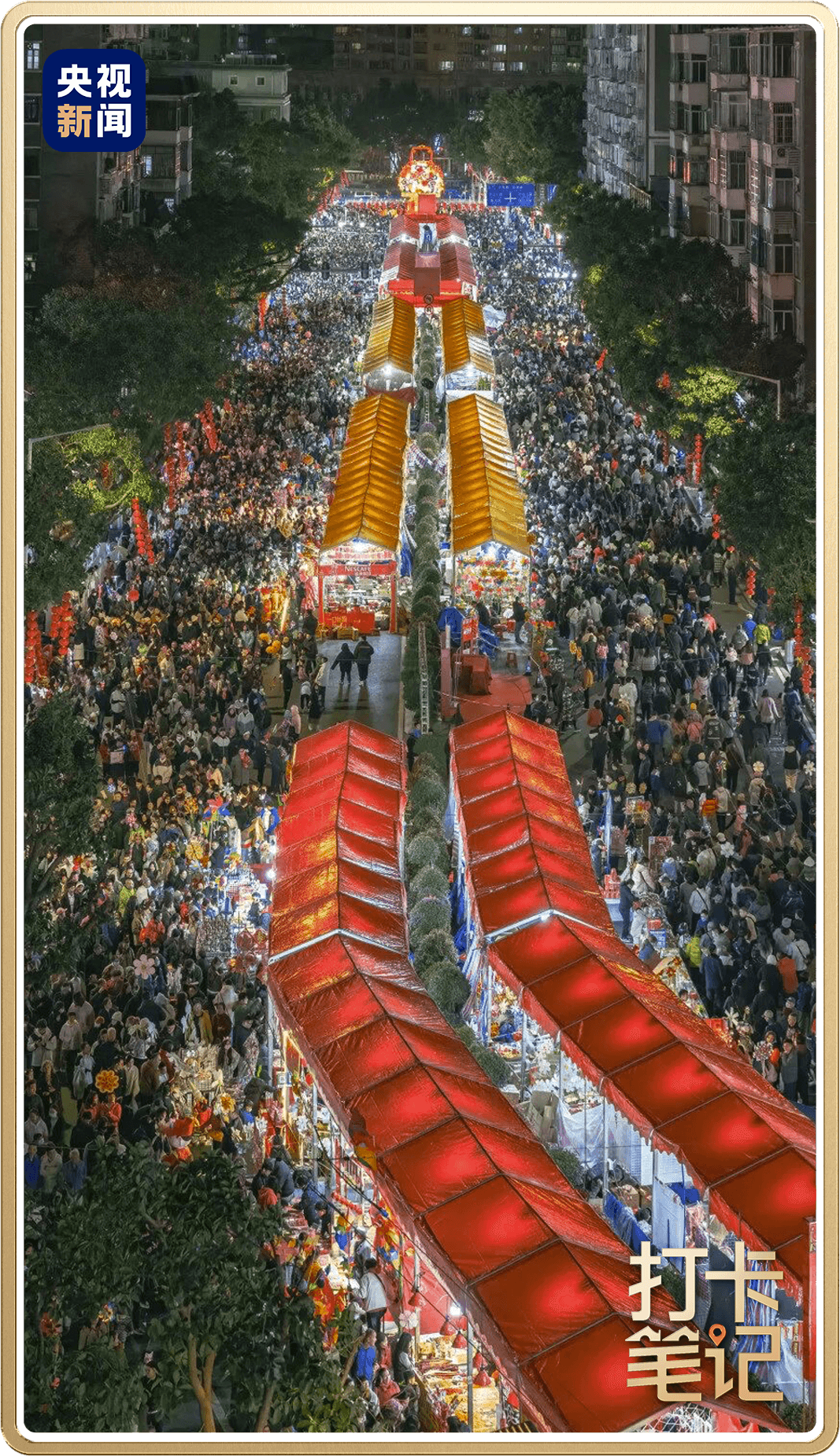 花街上放着欢庆的歌,卖着喜人的年货,更有来自天南海北的风味小吃。