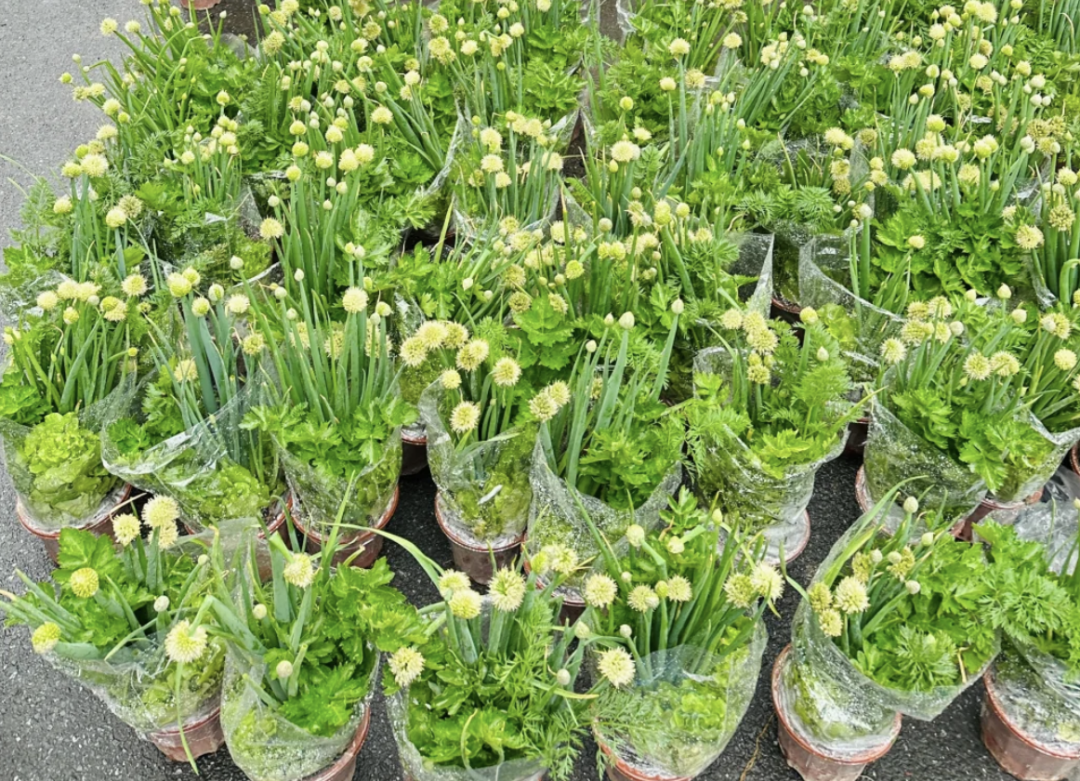 此外,由芹菜(勤奋)、生菜(生财)、葱(聪明)组成的盆栽,形似聚宝盆的蝴蝶兰也在花市里随处可见。