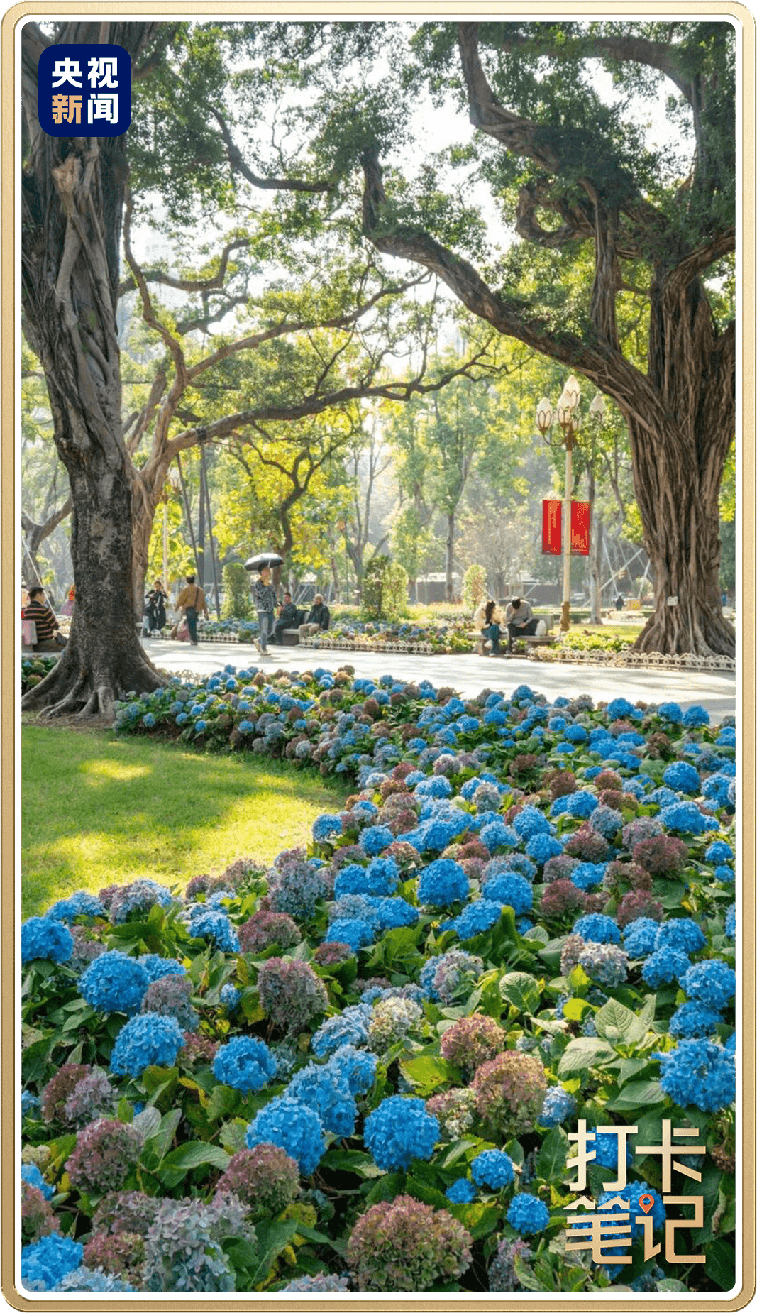 去广州人民公园看热情绽放的绣球花;去深圳梅园、汕尾陆河看梅花如雪覆枝头;去韶关新丰的山谷看彩霞般的樱花;去江门江海、珠海斗门看一望无际的金色油菜花。