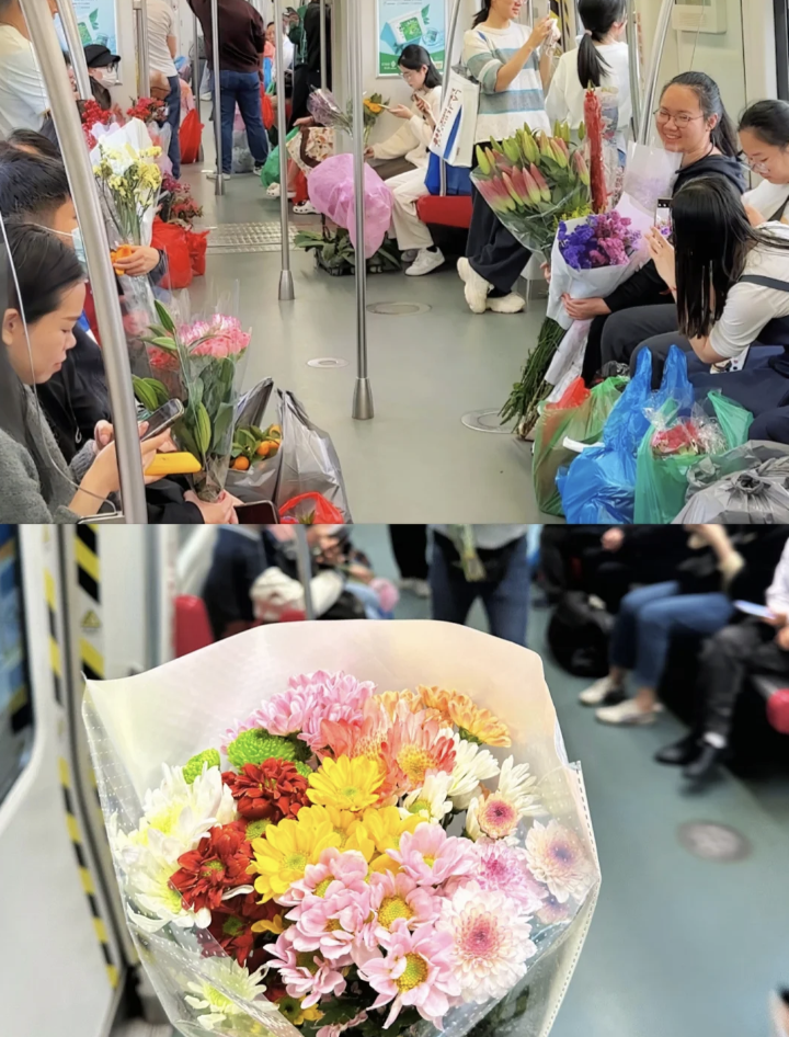 开往春天的广州地铁。图源:网友@佟熙ISSAC