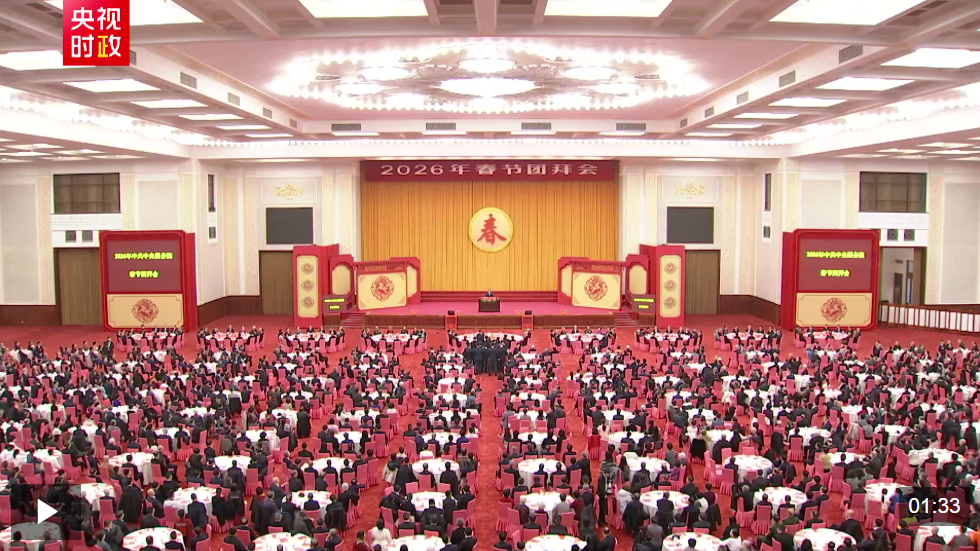 中共中央、国务院14日上午在人民大会堂举行2026年春节团拜会。中共中央总书记、国家主席、中央军委主席习近平发表讲话。