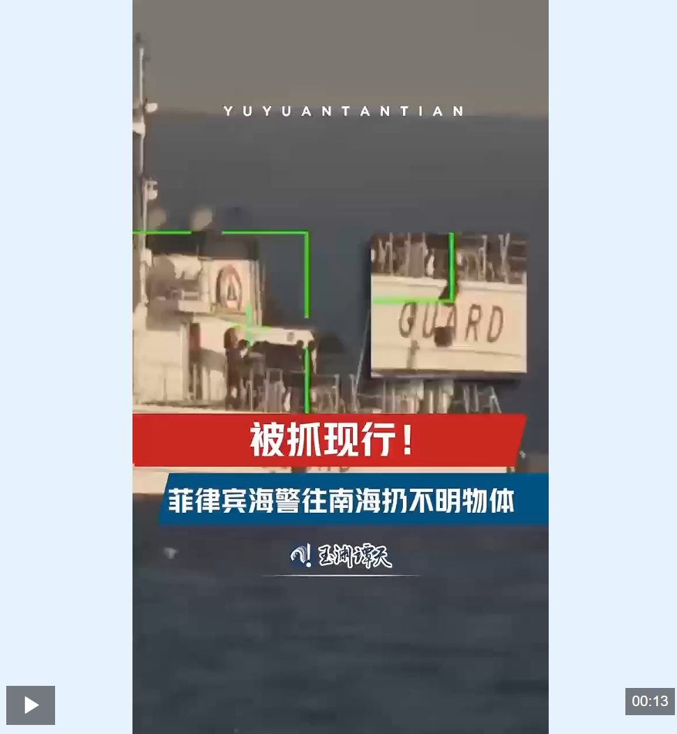 中國新聞亮點關注東盟新聞 玉渊谭天丨菲律宾海警在南海投放不明物体被抓现行 2026 年 2 月 18 日 2月16日,菲律宾海警4411船在我国南海南沙群岛附近海域扔下不明物体。这一过程,被我方海警全程监控并拍下。