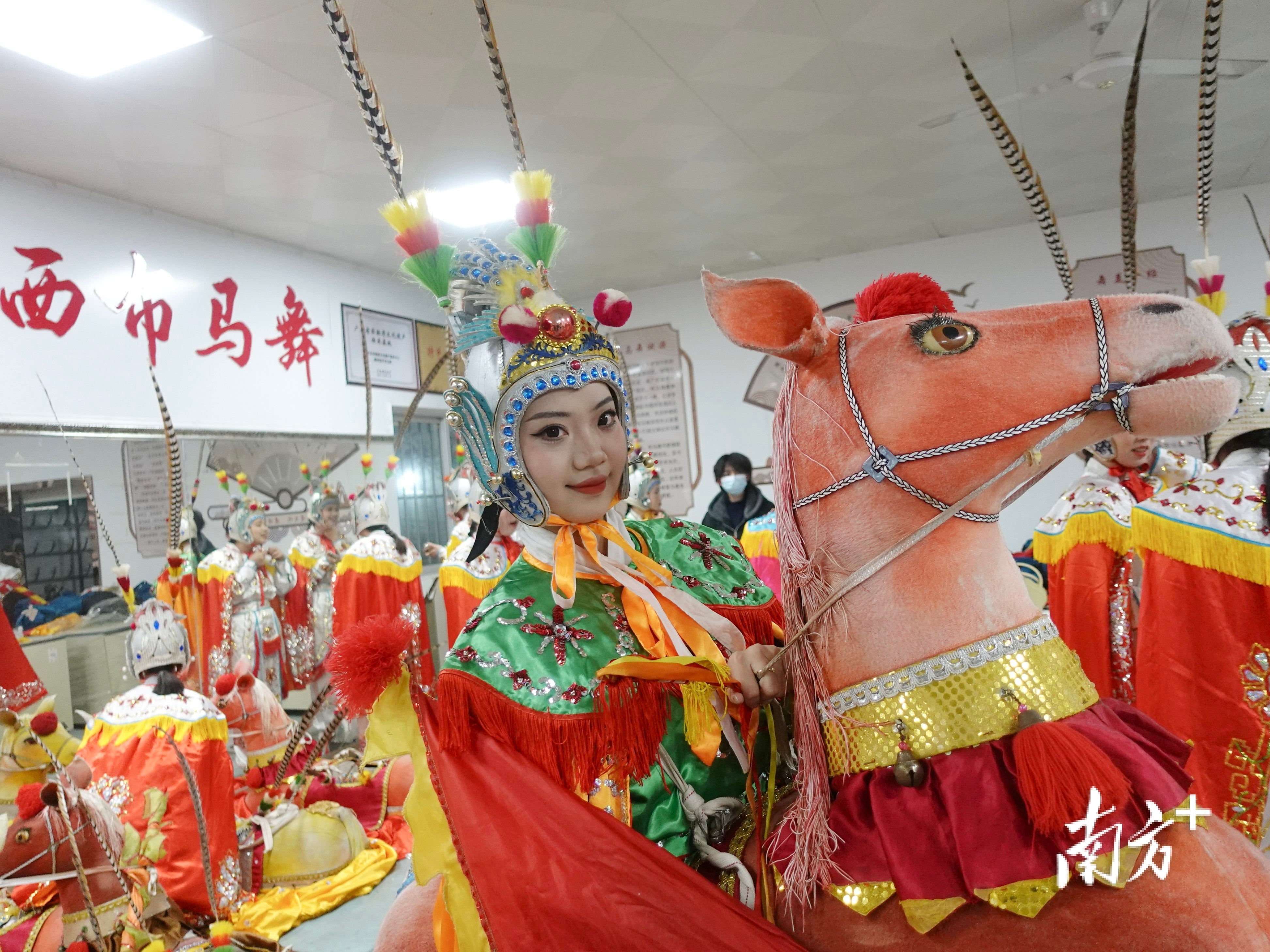 张文婷是在广州上大二的摄影爱好者,家住训练基地附近,在布马舞锣鼓声陪伴下长大。“我关注布马舞好多年,排练表演我都知道。”她说,春节巡游是村里大事,每年她都会准时追“马”,为姑娘们拍下靓照。