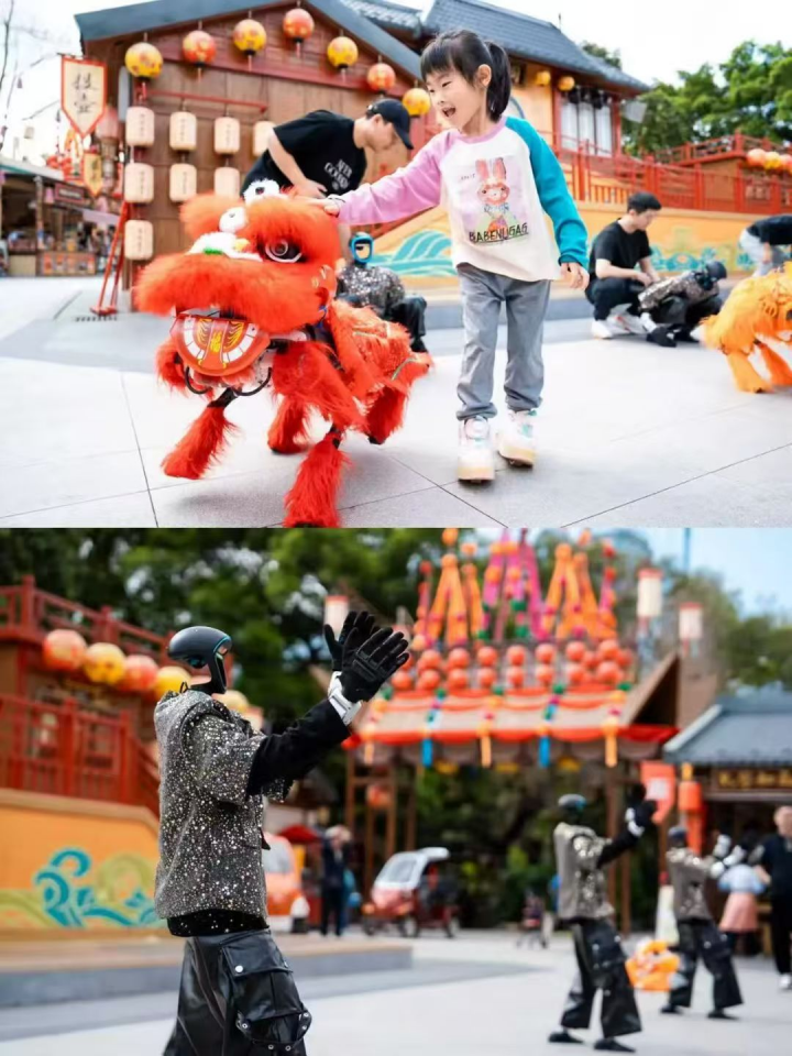 例如,在深圳锦绣中华主题公园,百余场社火巡游和民俗演艺轮番上演,舞龙舞狮开道,英歌舞助阵,潮汕布马舞、鱼灯舞等非遗项目齐亮相,海外游客可以现场体验拓印、剪影、造纸等非遗项目。