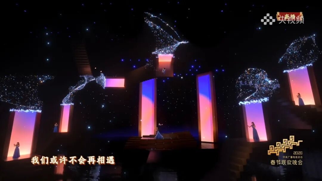 《你我经历的一刻》,是闪烁星光,也是百年长河。总台台长提炼原曲中最引人遐想的表述做歌名,一下拓展了舞台的表达空间。而我遇到你,像光遇到光,因为《人间共鸣》,所以豁然开朗。导演组紧扣“共鸣”设计视觉:密林深处的光束,恰似独行者的心灵微光,与象征共鸣者的灯阵共振后,天地辽阔,生出星空与极光。网友评价,舞台空旷只留微光,正让所有焦点都落在了歌的意境里。