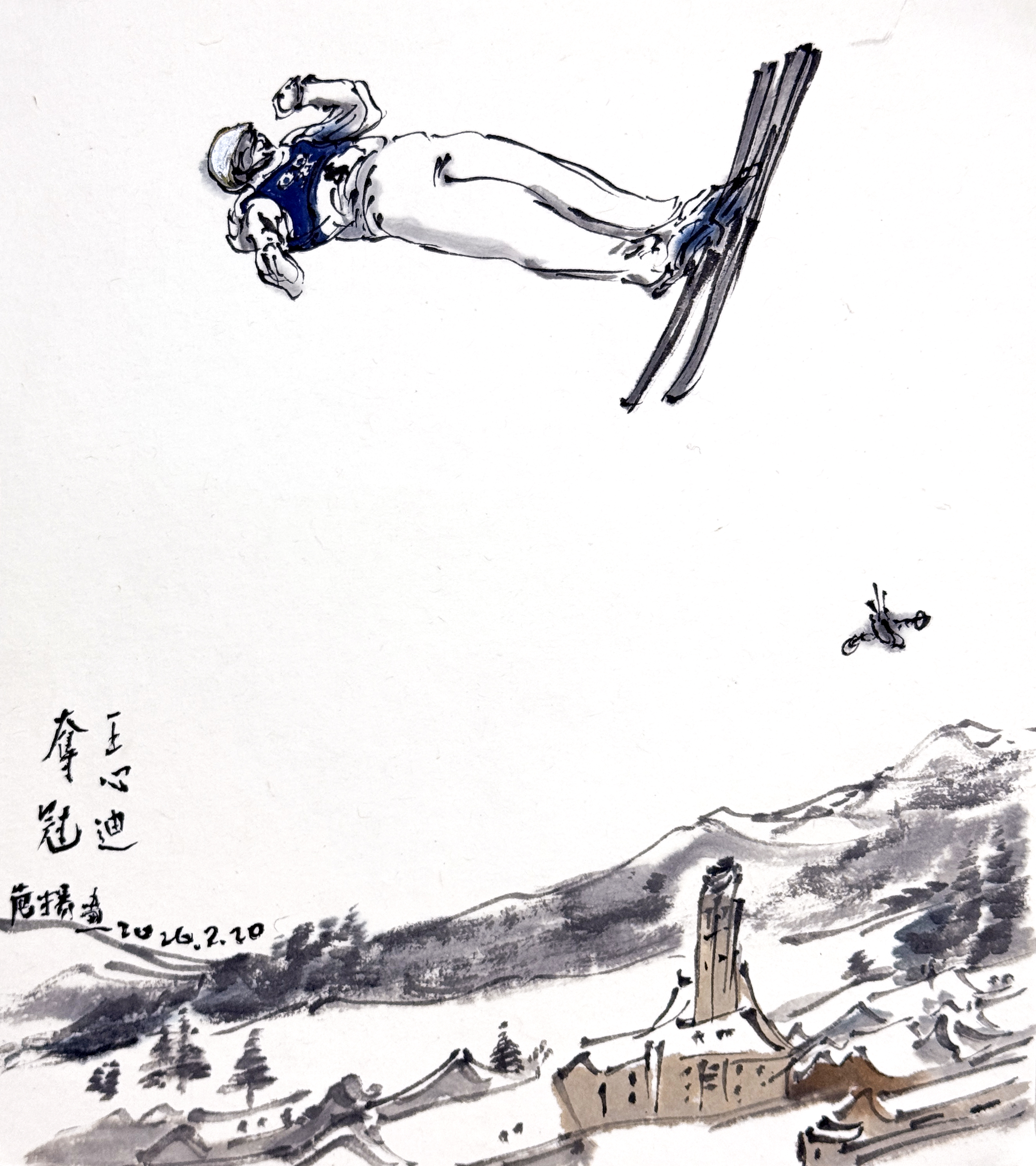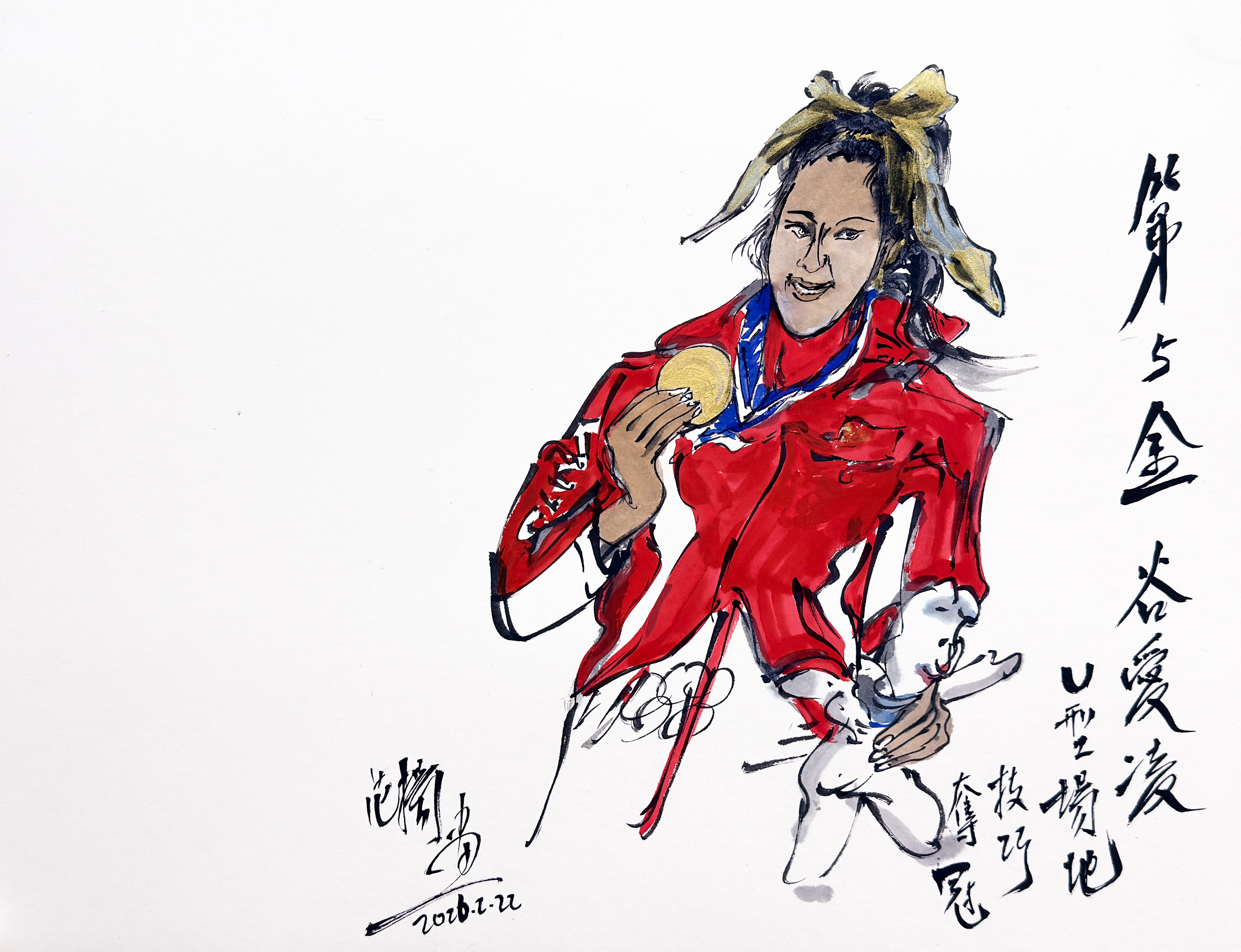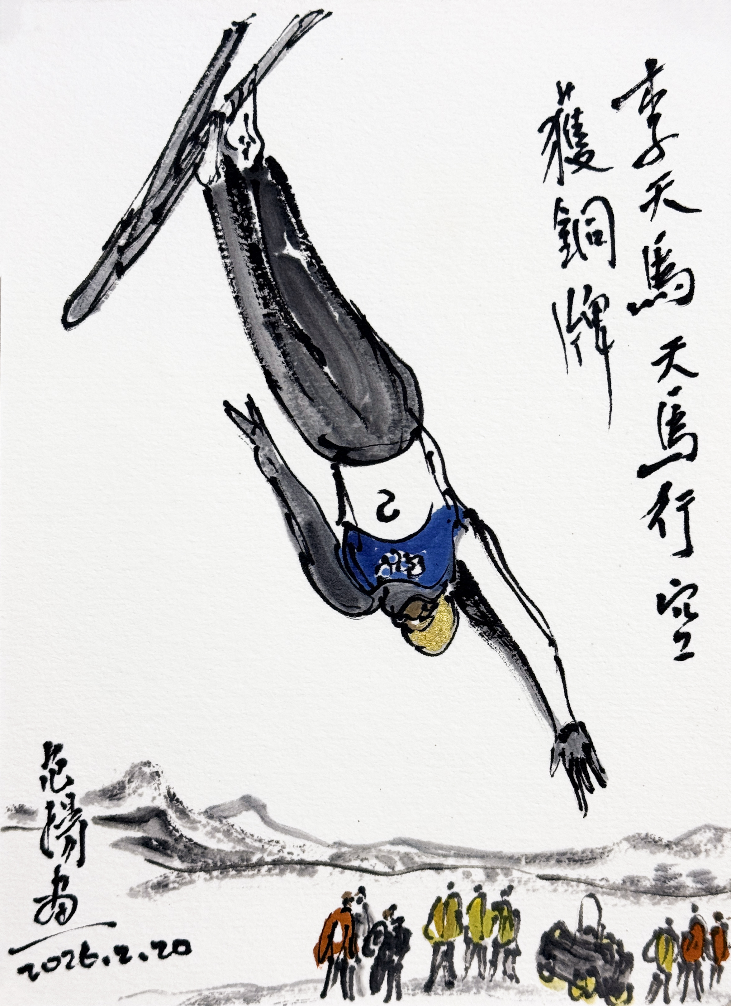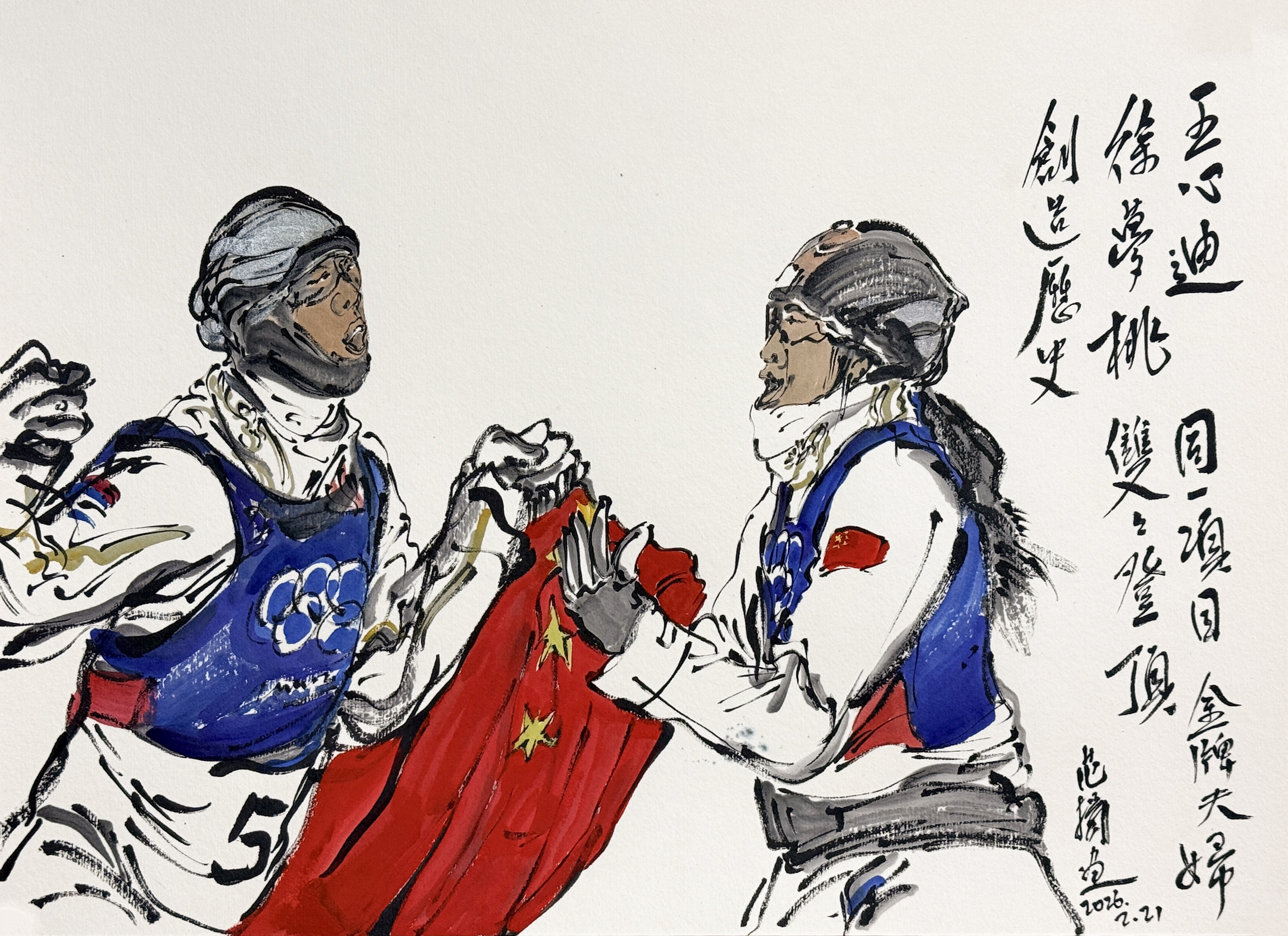 華夏視點 夺冠夺冠!范扬笔下的中国冬奥健儿精彩连连 2026 年 2 月 23 日 王心迪夺冠、谷爱凌夺冠!李方慧摘银、李天马赢铜!随着米兰冬奥会进入闭幕倒计时,中国健儿夺牌的脚步没有停歇。著名书画家范扬先生妙笔生花,将一个个精彩瞬间跃然纸上。无论是徐梦桃、王心迪冬奥冠军夫妇的欢呼庆贺,还是谷爱凌的凌空大旋转;无论是李方慧的空中飞旋,还是李天马的“天马行空”,无不栩栩如生、呼之欲出。