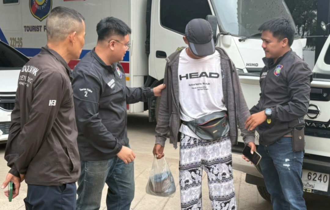 泰国旅游警察局23日在清迈知名旅游景点塔佩门逮捕了31岁的清莱府男子颂猜,并扣押其当日所穿衣物作为物证。