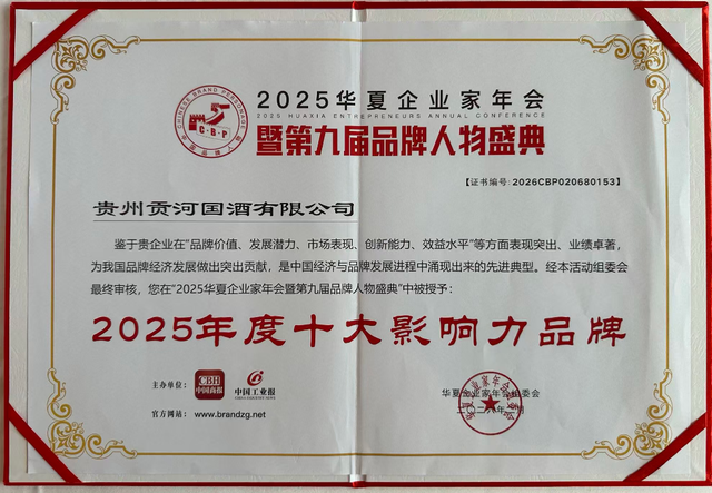 贡河国酒荣获“2025年度十大影响力品牌”