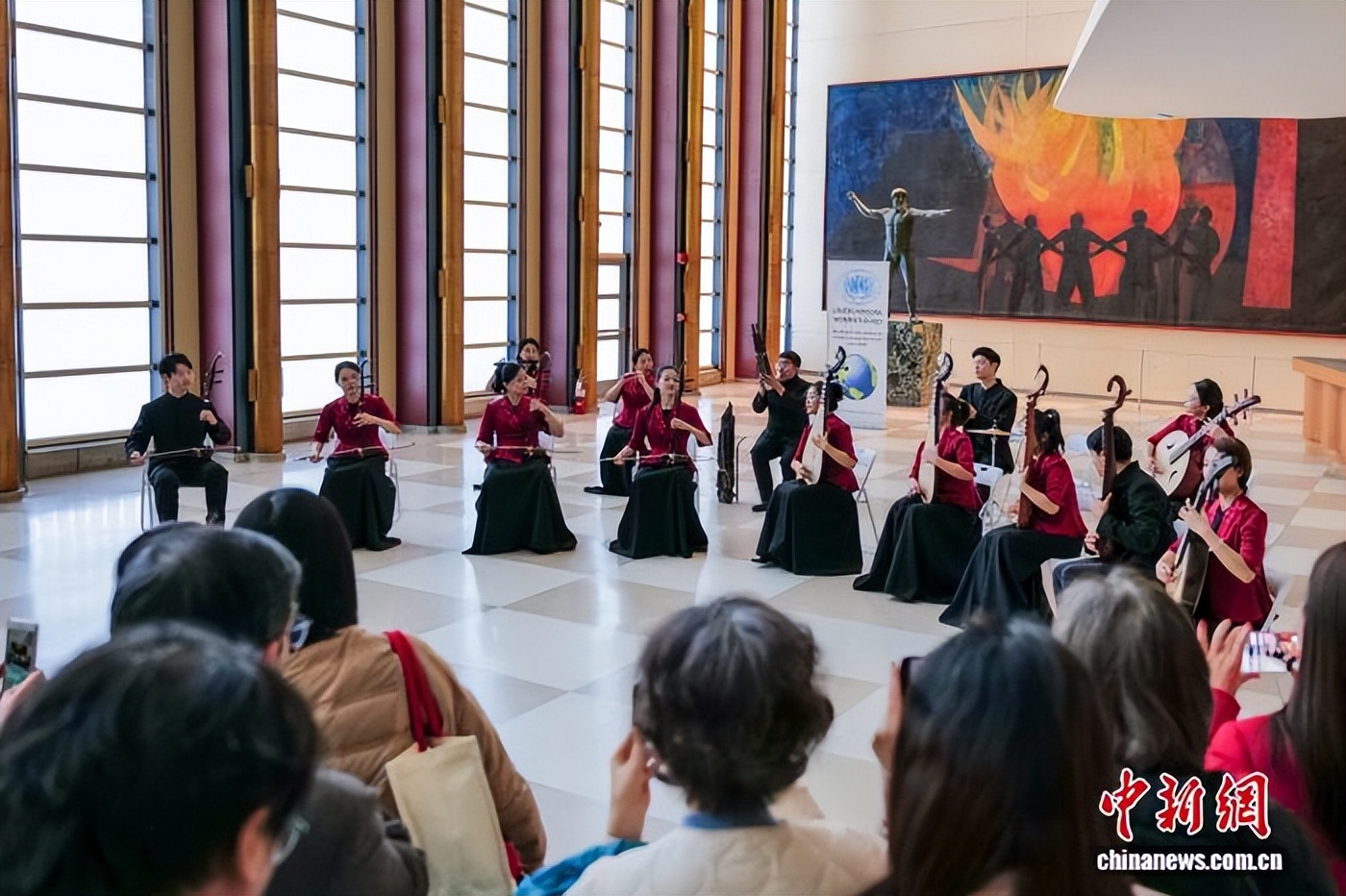 当地时间2月25日,来自中央音乐学院的民乐演奏家在纽约联合国总部上演快闪音乐会。图为音乐会现场。 中新社记者 王帆 摄