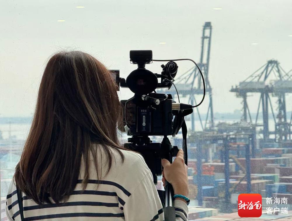 中外记者探访洋浦国际集装箱码头。记者 丁文文 摄
