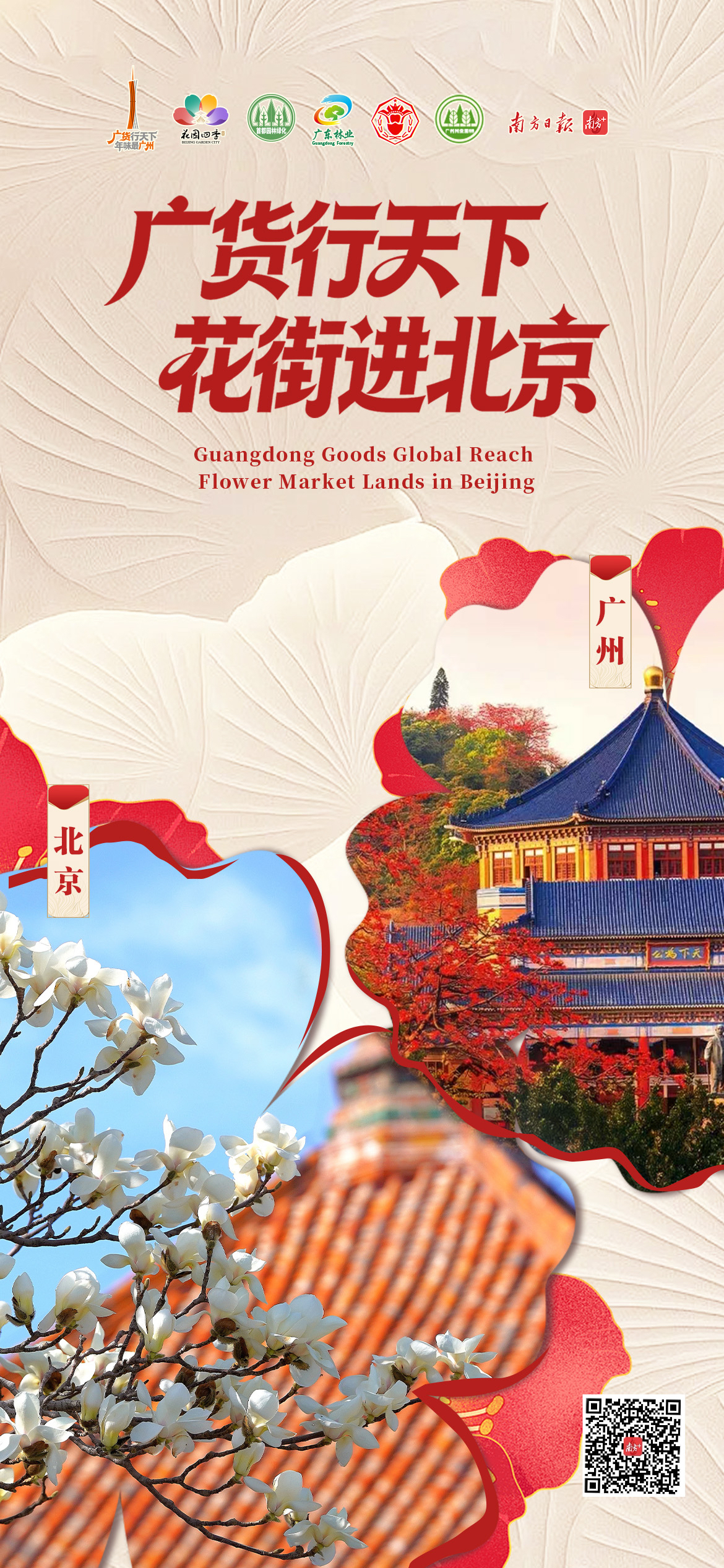 中國新聞亮點關注 明天见!我们把岭南的春天,带进北京 2026 年 3 月 3 日 一场跨越千里的广府花街文化盛宴即将开启。 为深入贯彻落实中央经济工作会议精神及省委、省政府关于促进文旅消费、擦亮“广货行天下”品牌的决策部署,紧扣“广货行天下”春季行动,“广货行天下花街进北京”活动定于2026年3月3日至10日在北京北海公园碧海楼举办。此次活动旨在通过文化展示、商品展销、餐饮服务与互动体验的多元融合,全景式复刻广府节庆氛围,推动岭南文化走向全国。 活动亮点纷呈,诚邀各界朋友莅临,共赏岭南风情,共享广货盛宴。