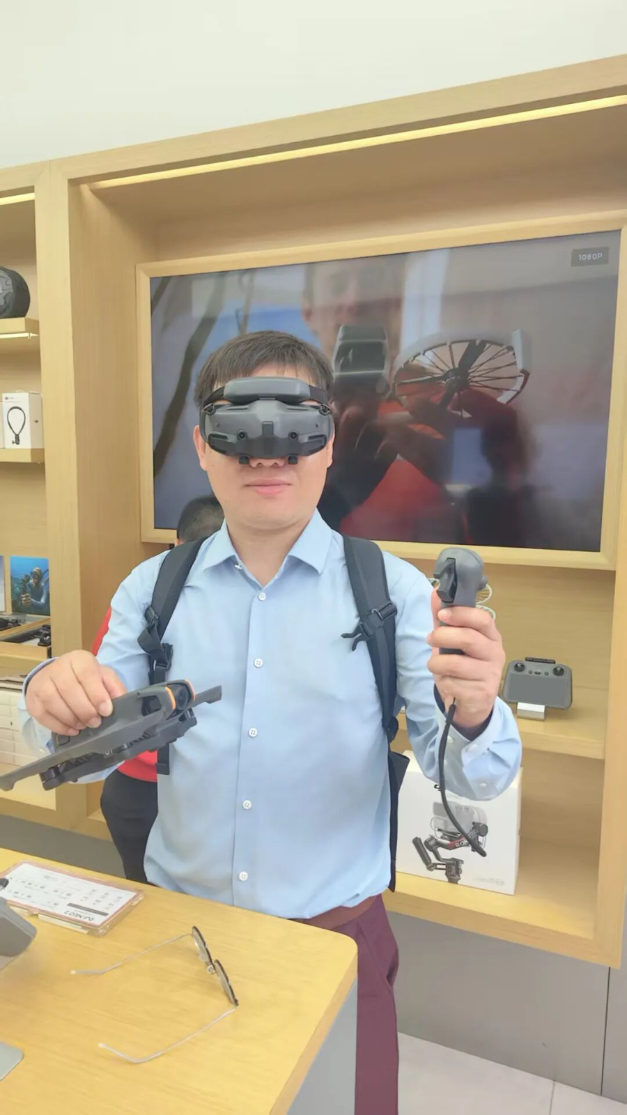 5000元以上的产品,则可以与无人机连接,为第一视角飞行无人机眼镜。在现场,不少青少年拿着春节爷爷奶奶给的压岁钱,前来购买这些最新款的科技产品。一位深圳的中学生表示:“我想用压岁钱买一个带AI眼镜的无人机。”
