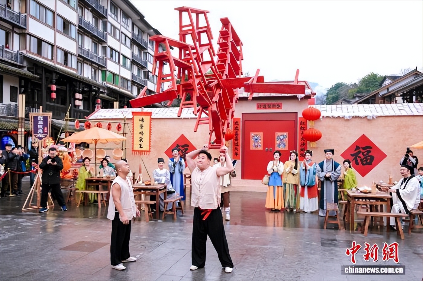 图为活动现场,民间艺人展示板凳功夫。重庆市文化和旅游发展委员会供图